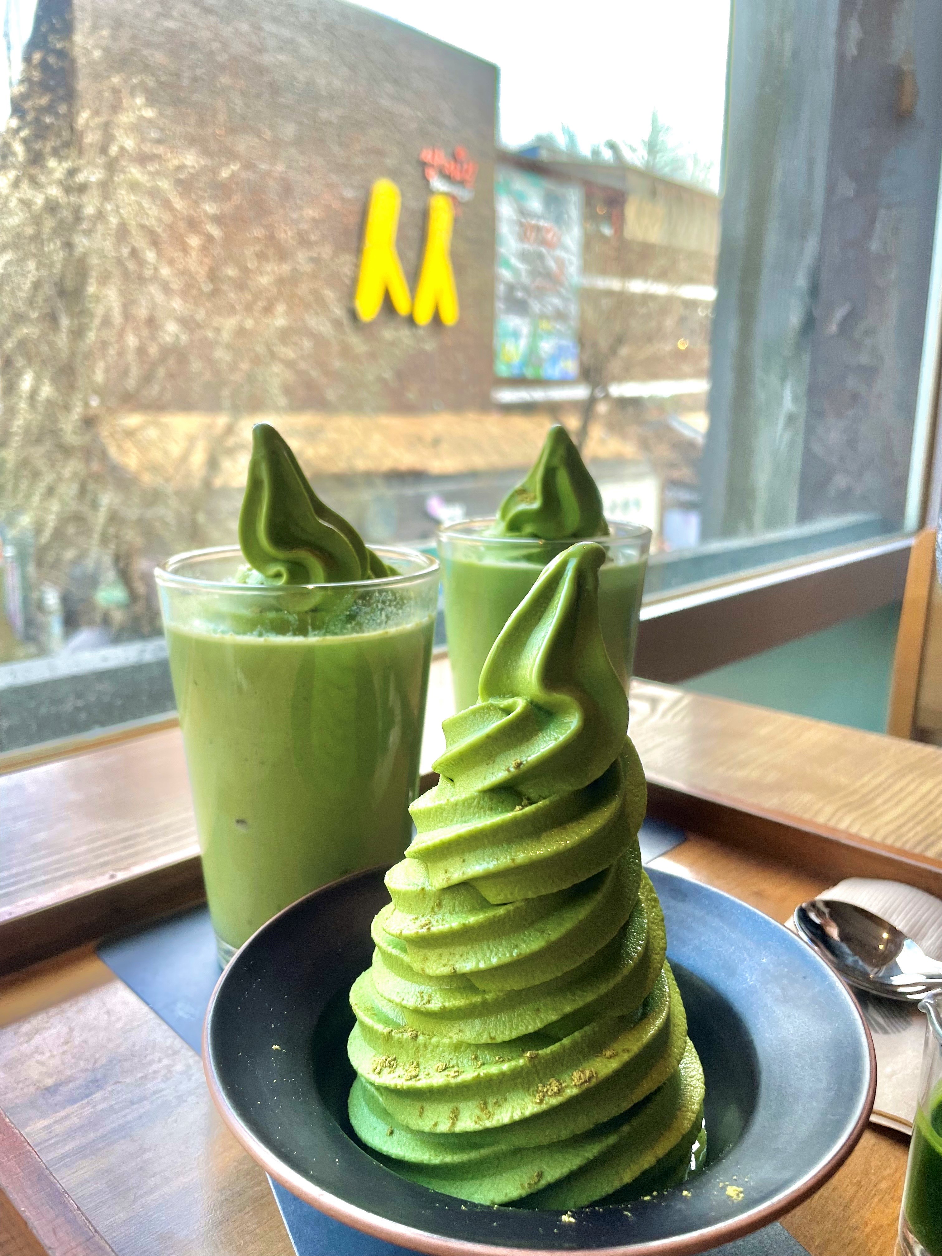 "그린티 아이스크림 M 사이즈(M 사이즈가 녹차원액을 줌) + 녹차 오프레도" 꿀맛 조합 꼭 먹어봤으면 ㅠㅠㅠ
