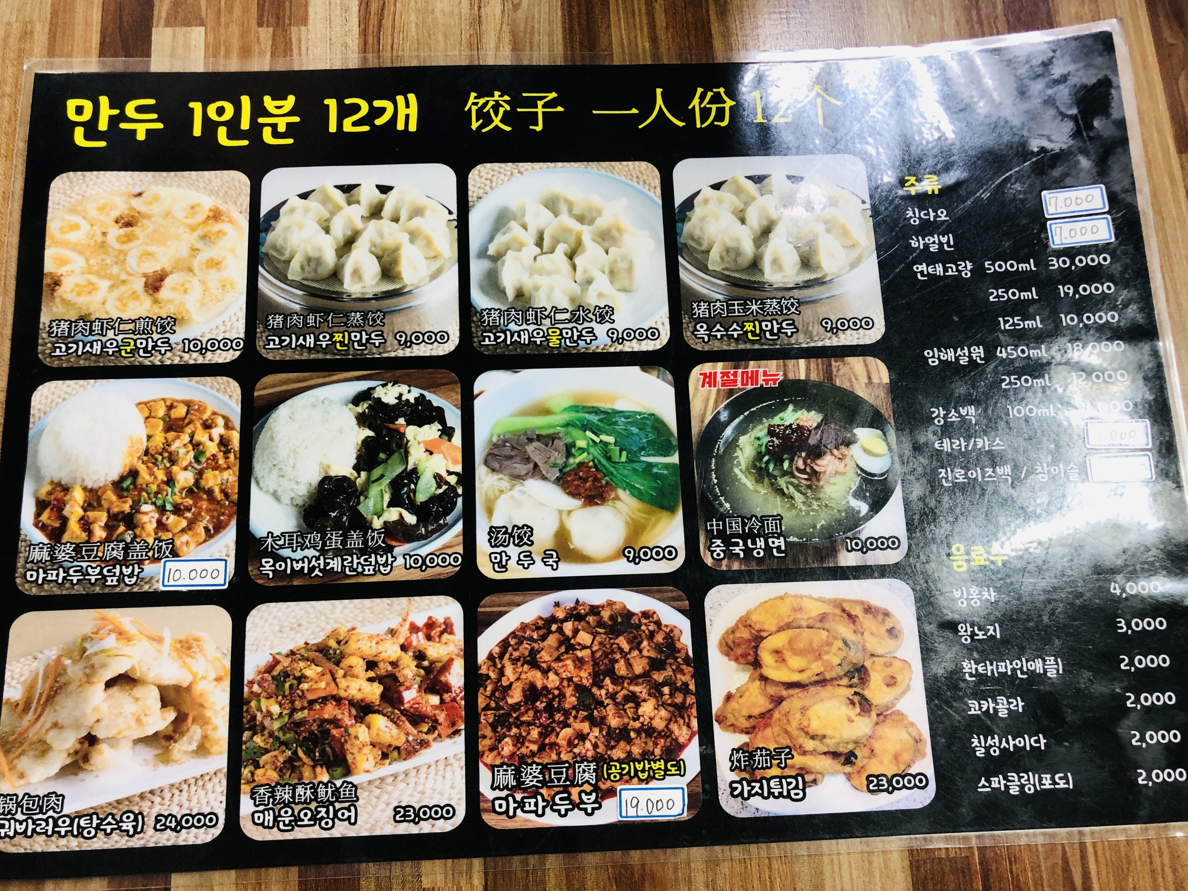 여기서 먹어본 메뉴는 고기새우군만두, 고기새우찐만두, 마파두부덮밥, 꿔바로우인데,