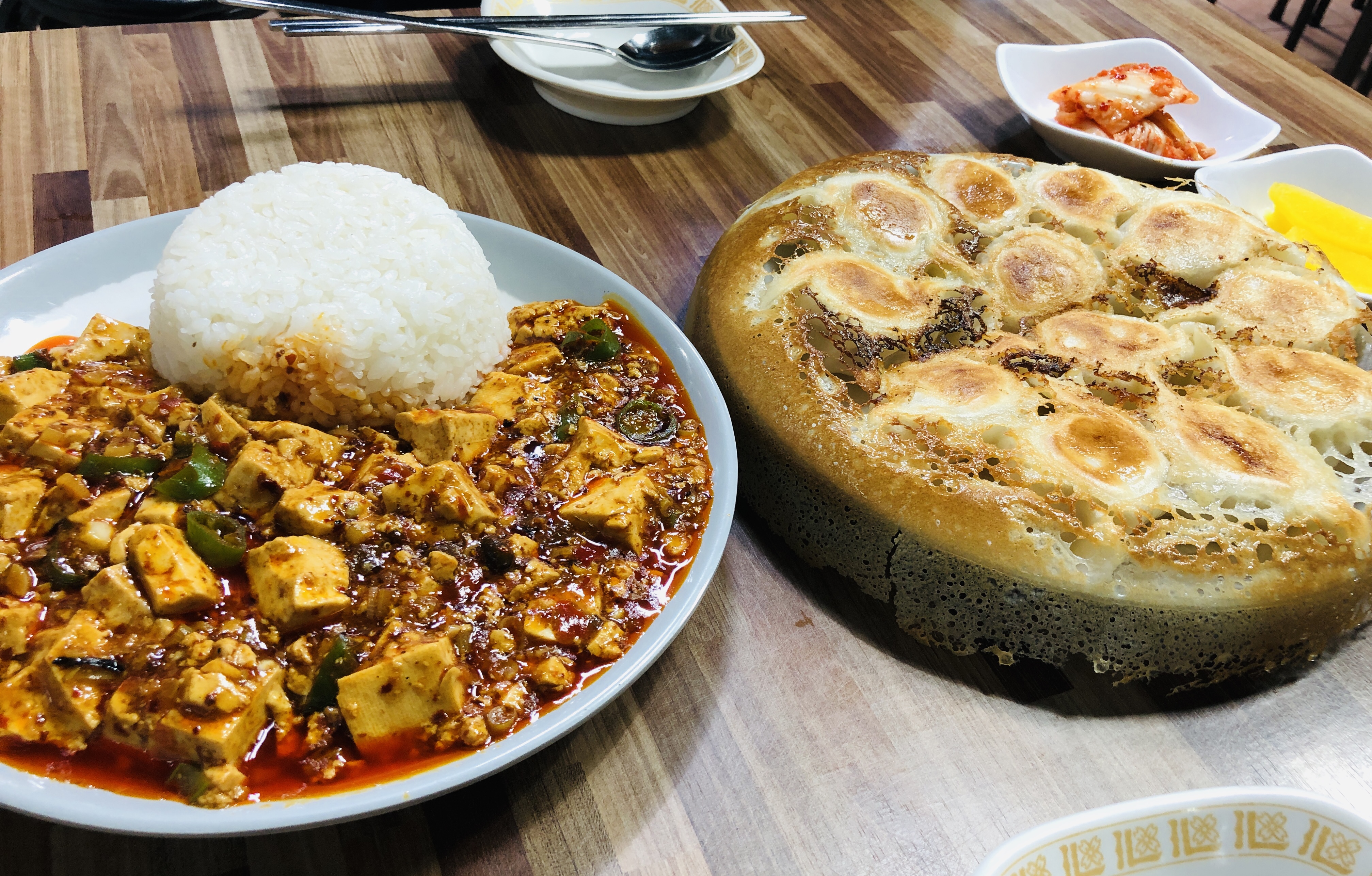 여기서 먹어본 메뉴는 고기새우군만두, 고기새우찐만두, 마파두부덮밥, 꿔바로우인데,