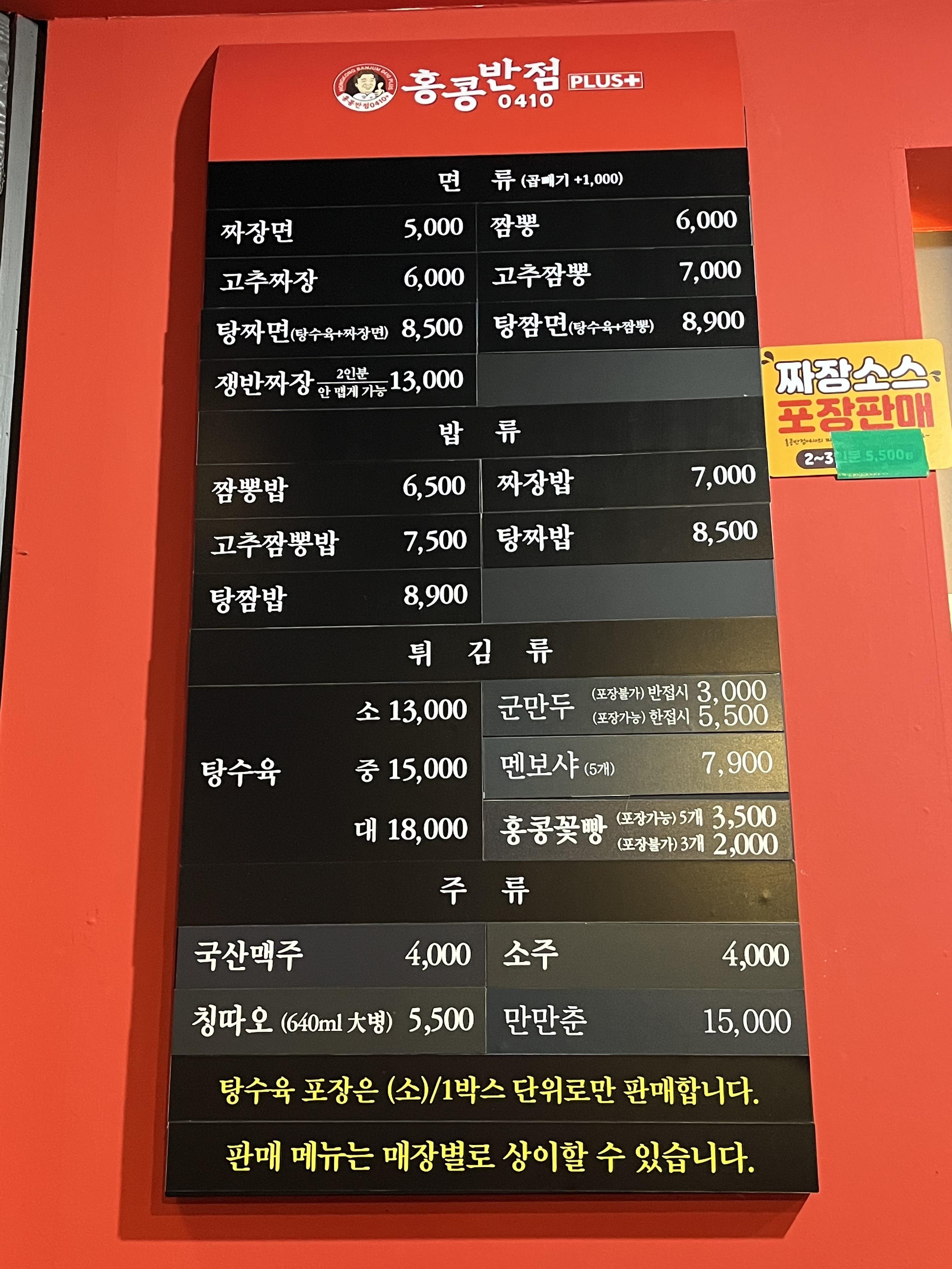 다른 메뉴를 시키고 달라는 분도 많은지, 짜장밥을 시켜야만 짬뽕국물이 나온다고 벽면에 적혀있음 ㅋㅋㅋㅋ