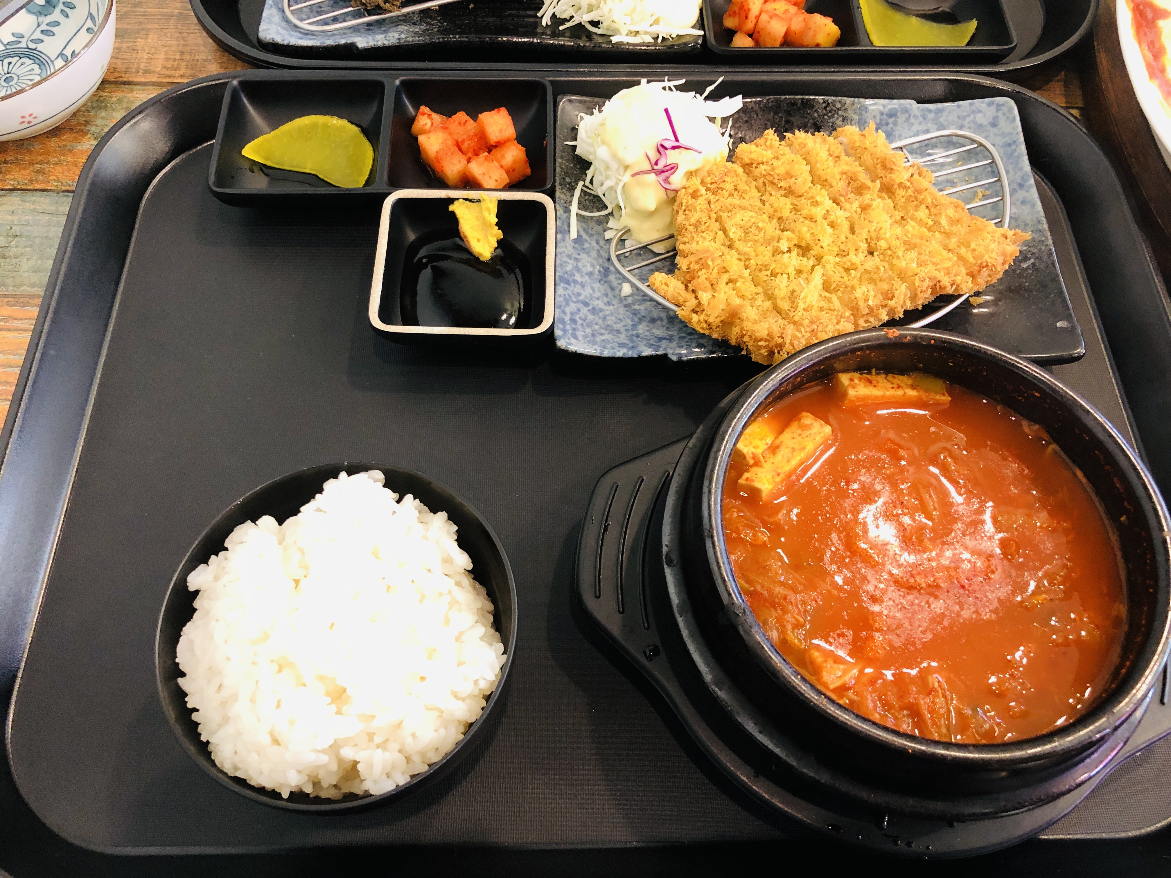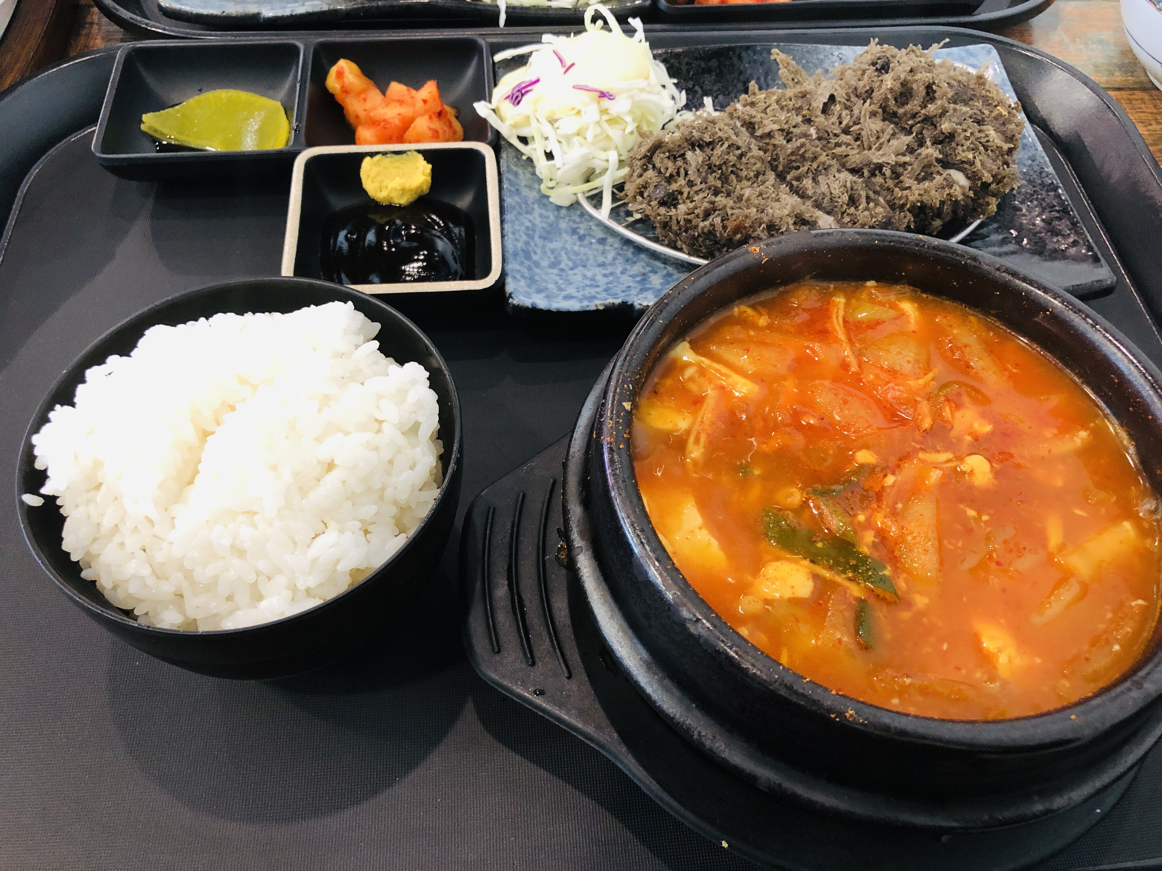 순두부찌개는 진하고 칼칼한 맛으로 돈까스의 느끼함을 싹 내려주는 그런 맛이었다.