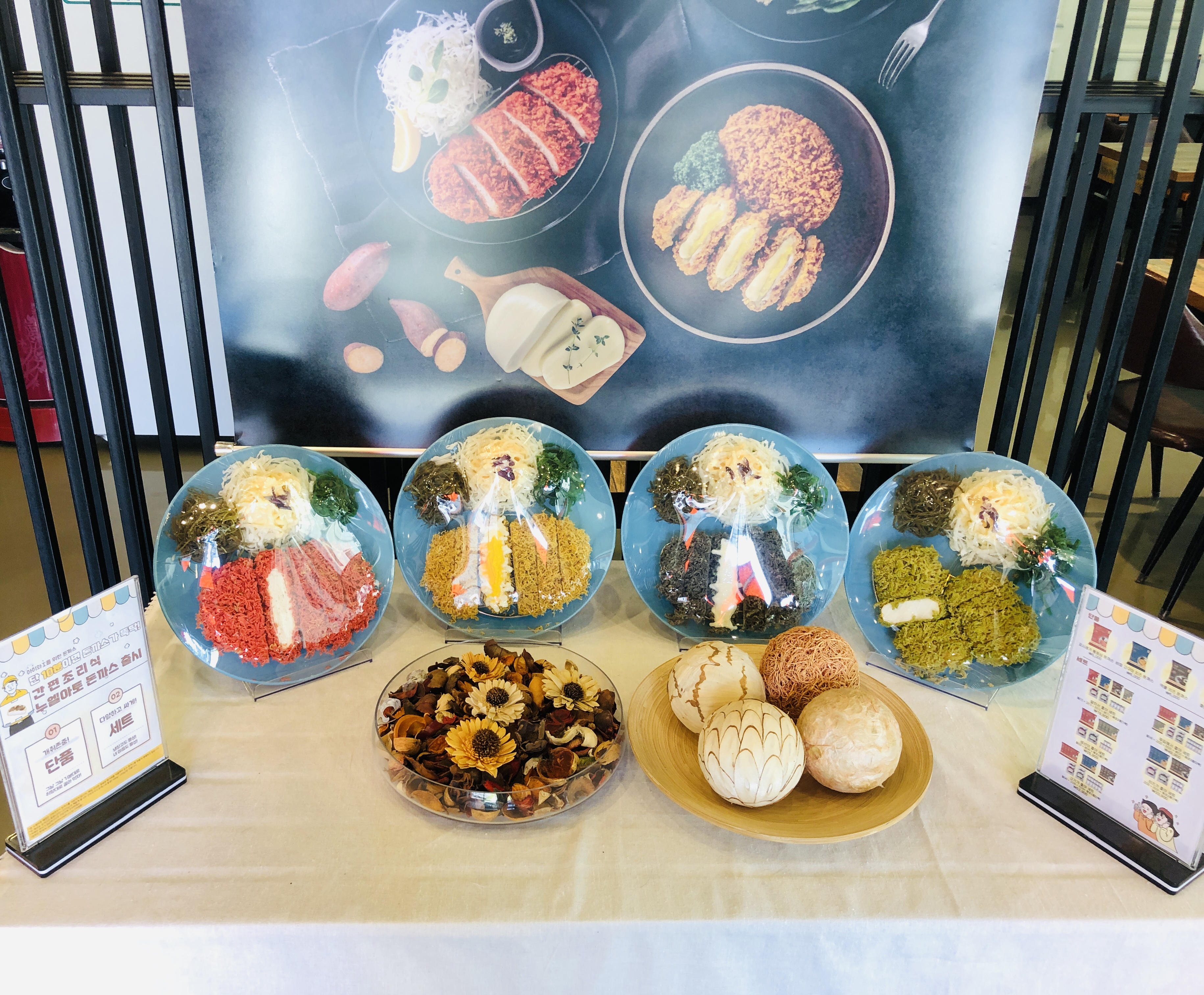 돈까스 빵가루 종류로 꼬시래기, 황금 비파, 오징어 먹물, 매생이 이렇게 네 가지가 있다.