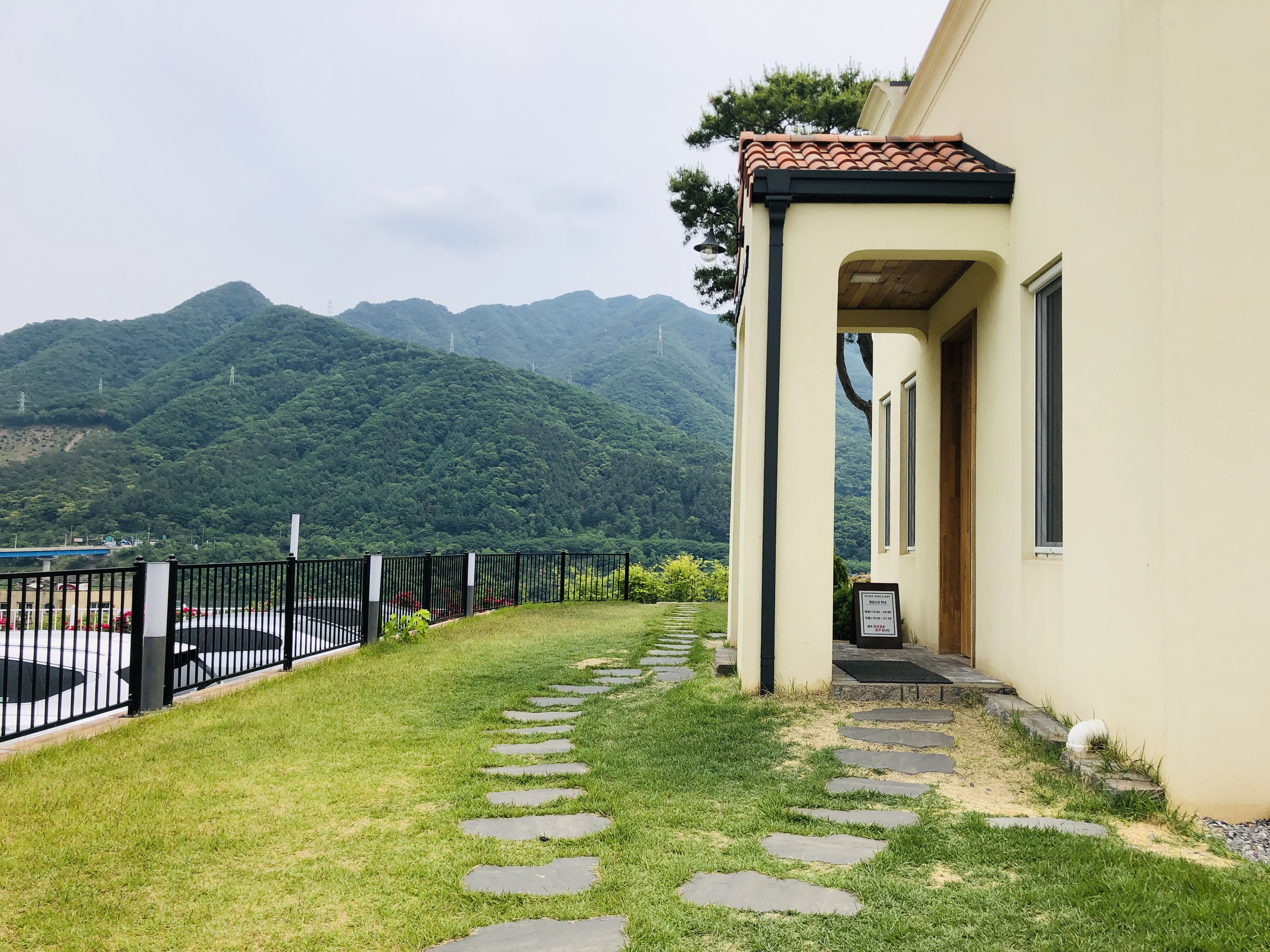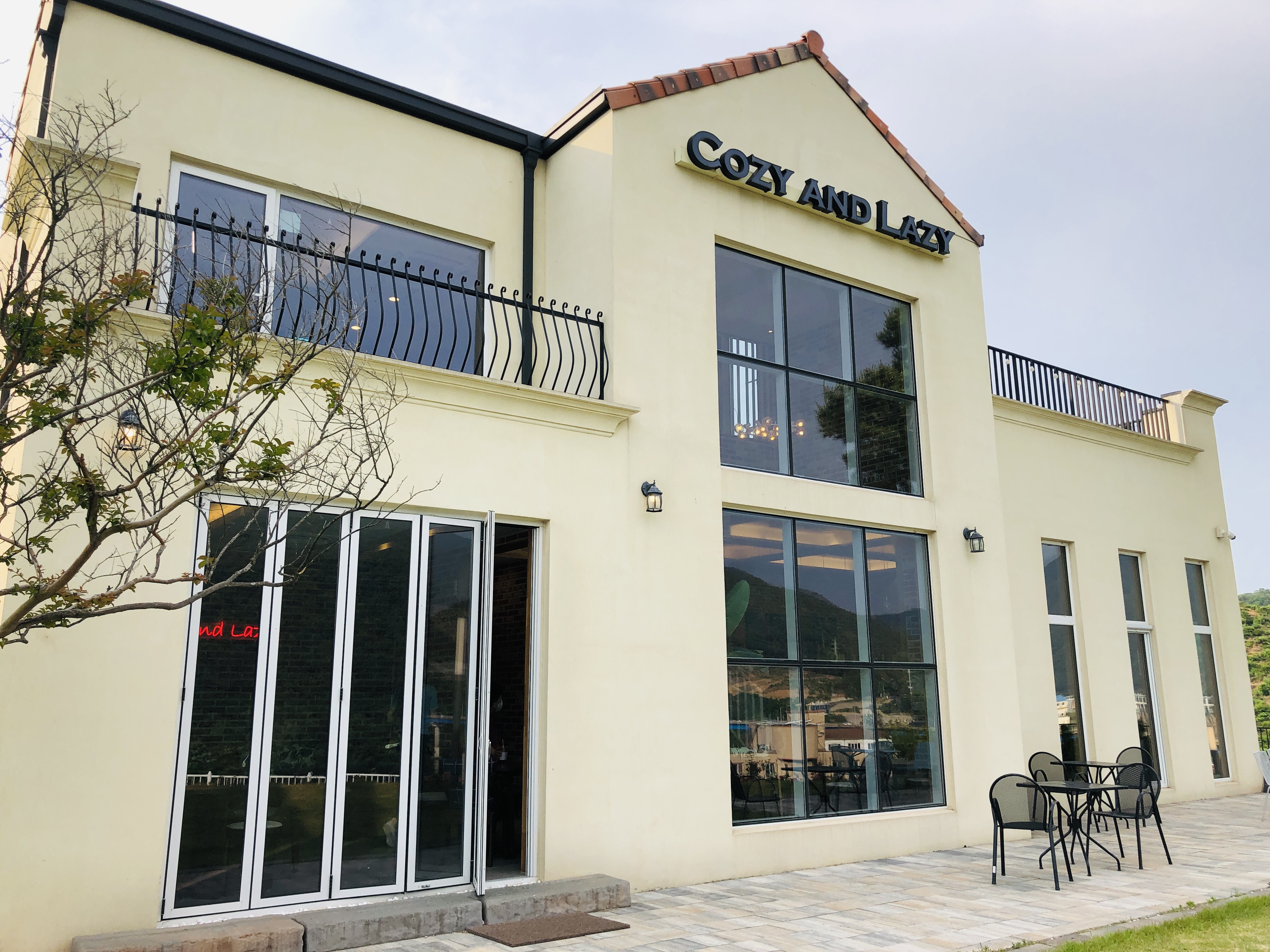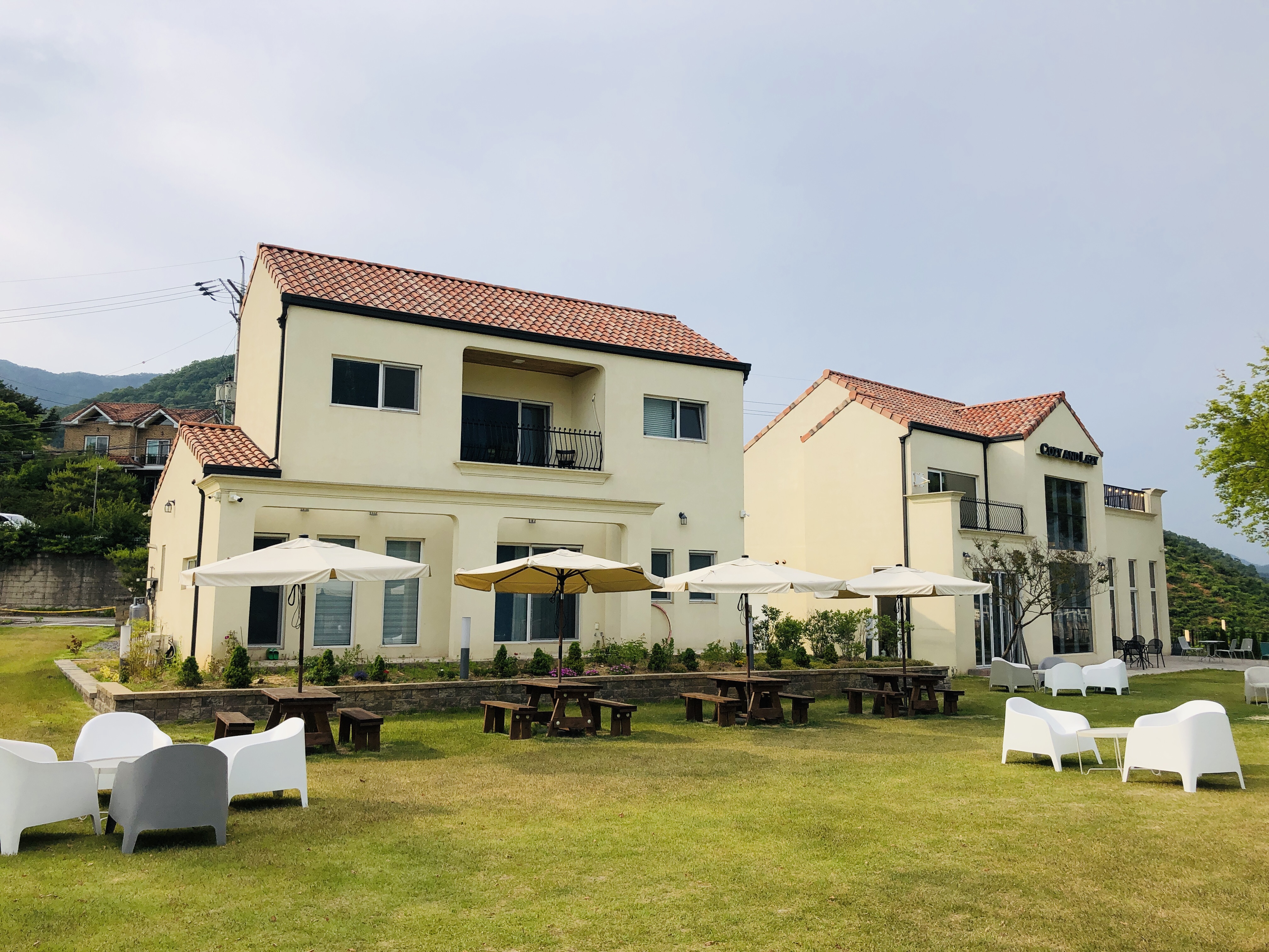 코지앤레이지(cozy and lazy) 건물 외관과 야외정원이다.