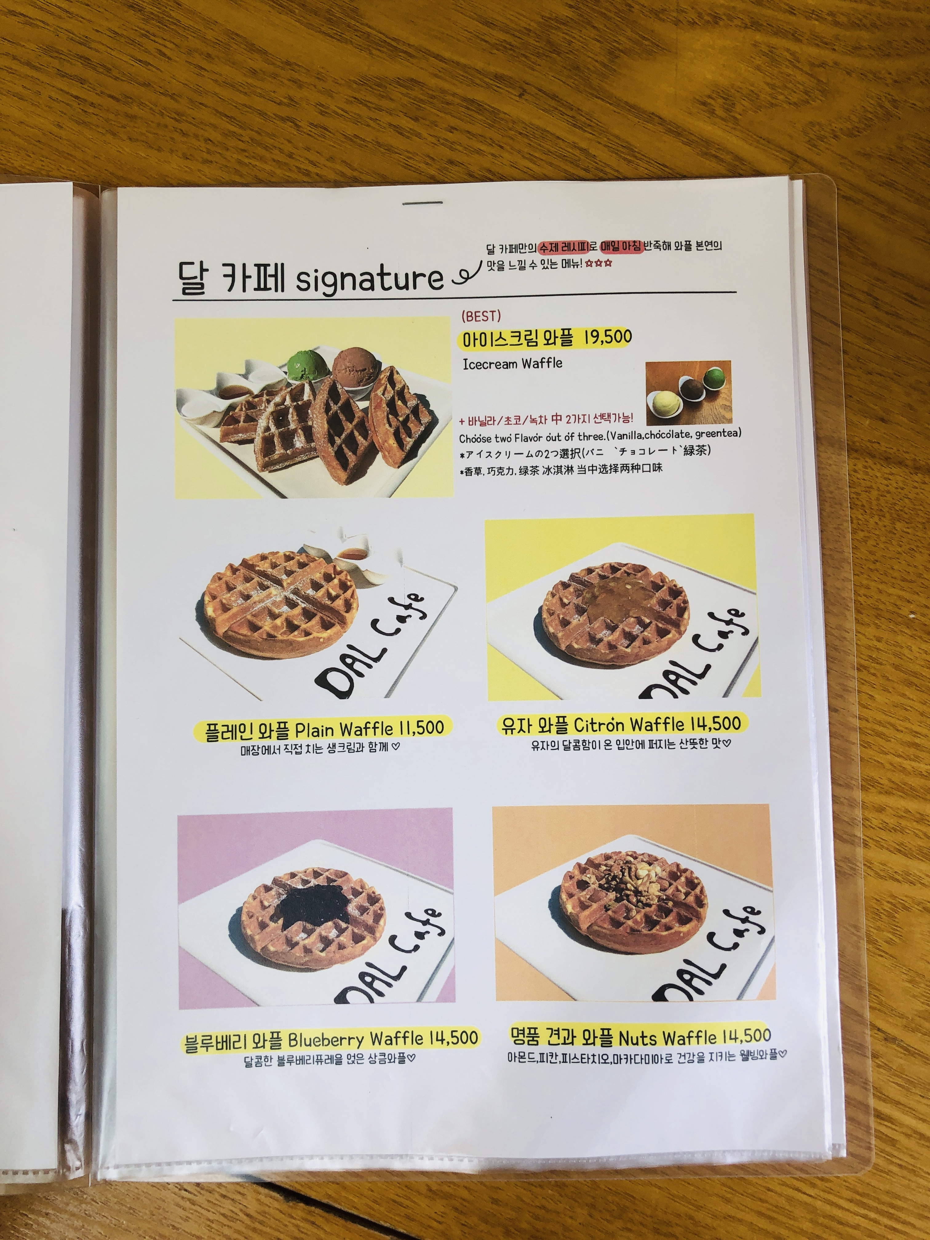 빙수, 와플, 커피, 음료, 맥주 등 다양한 메뉴를 판매한다.