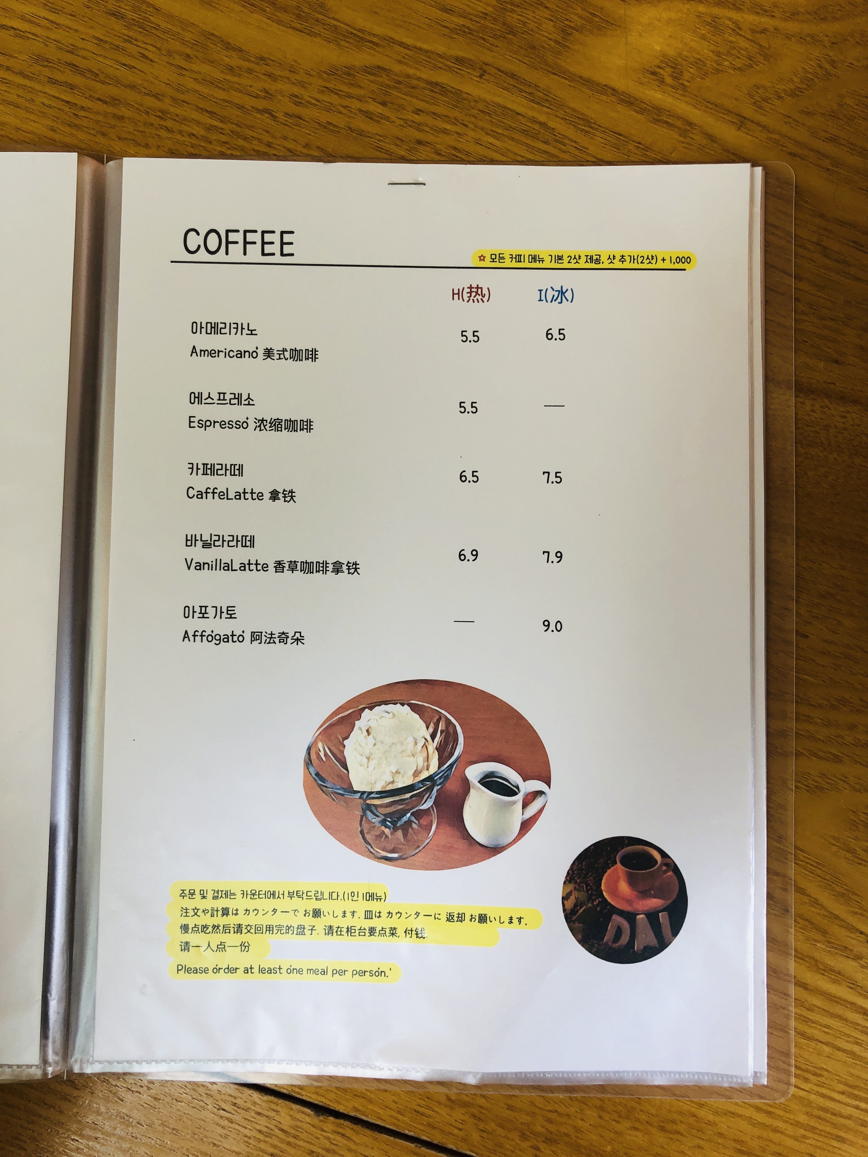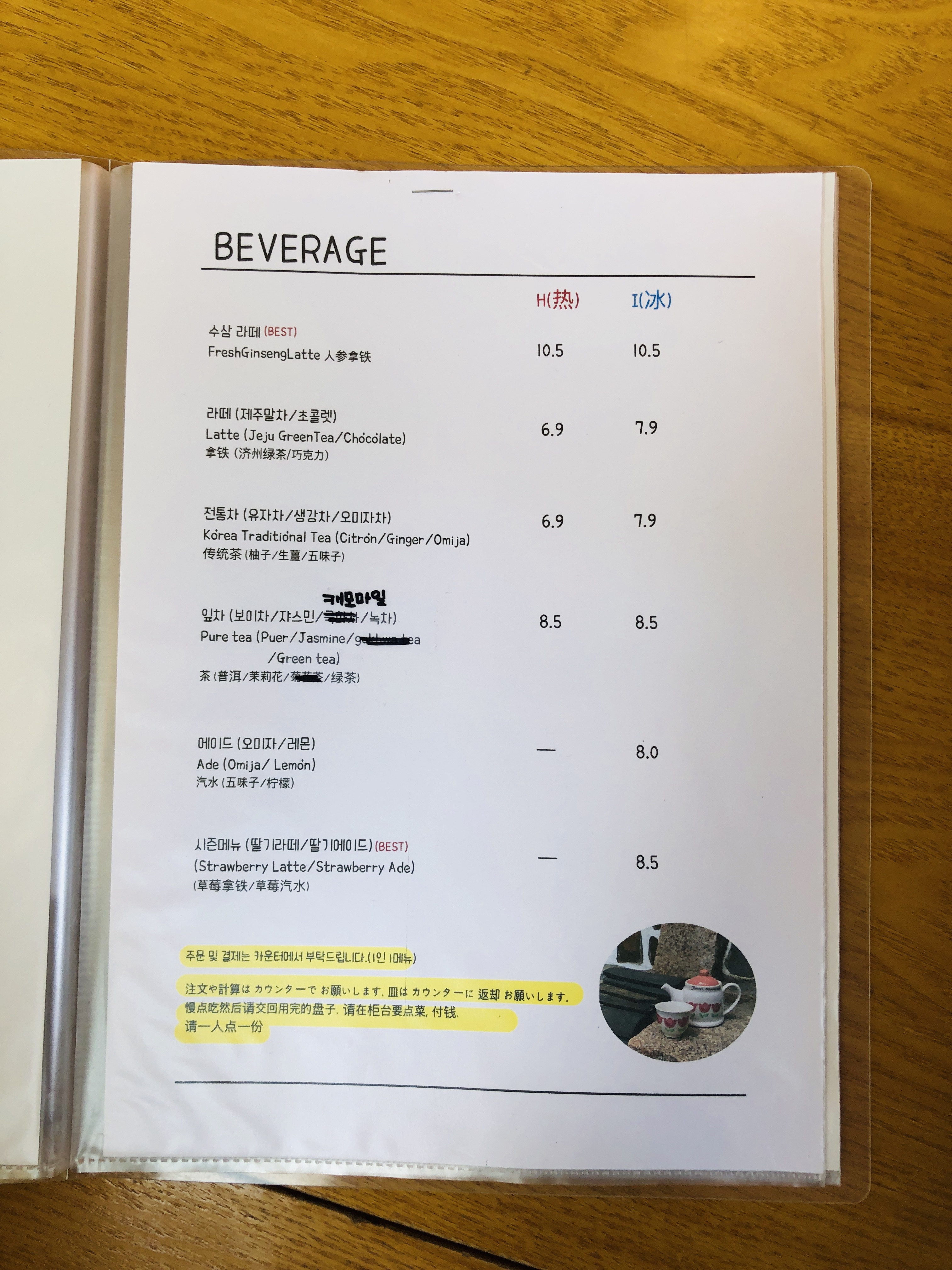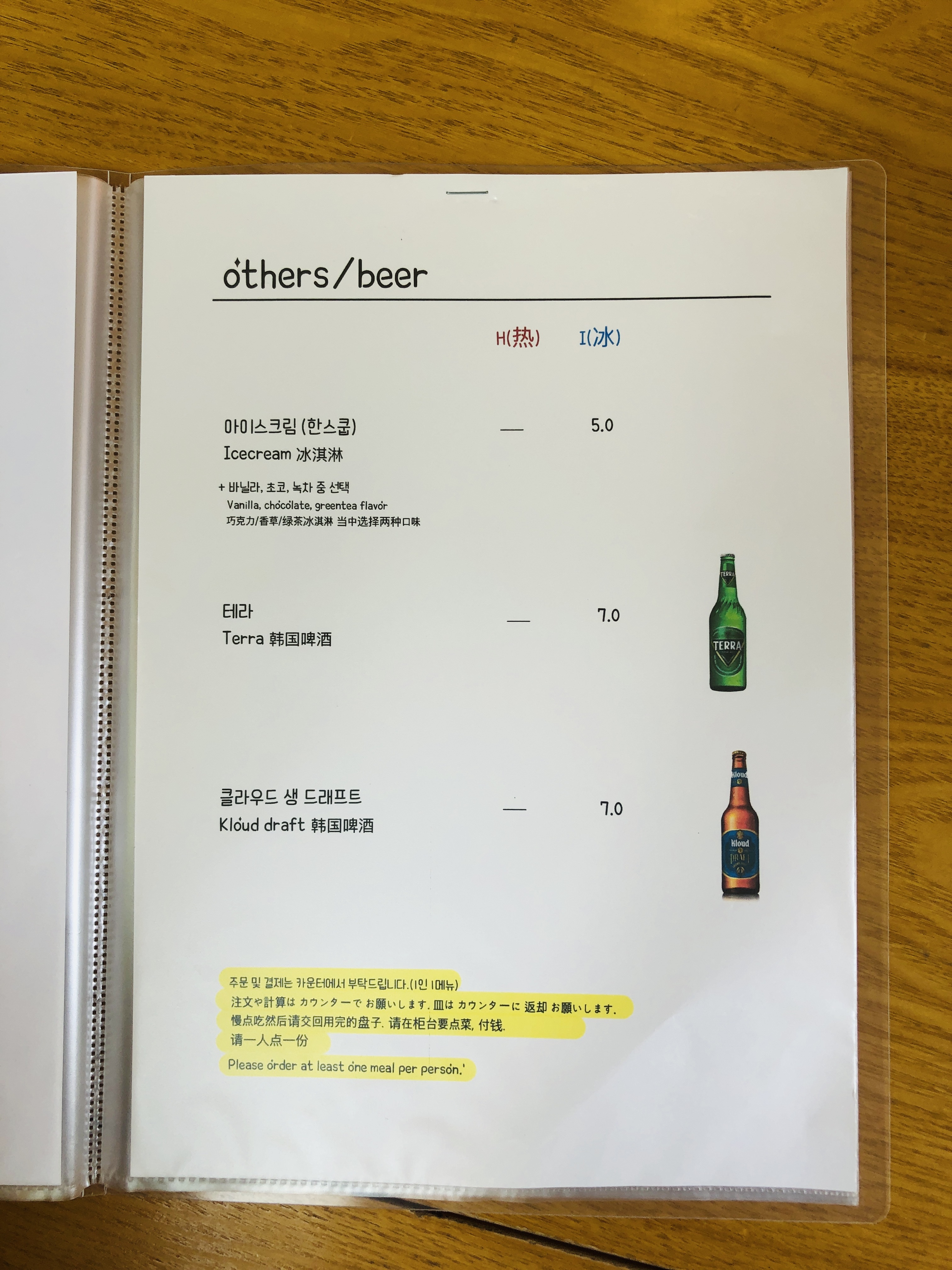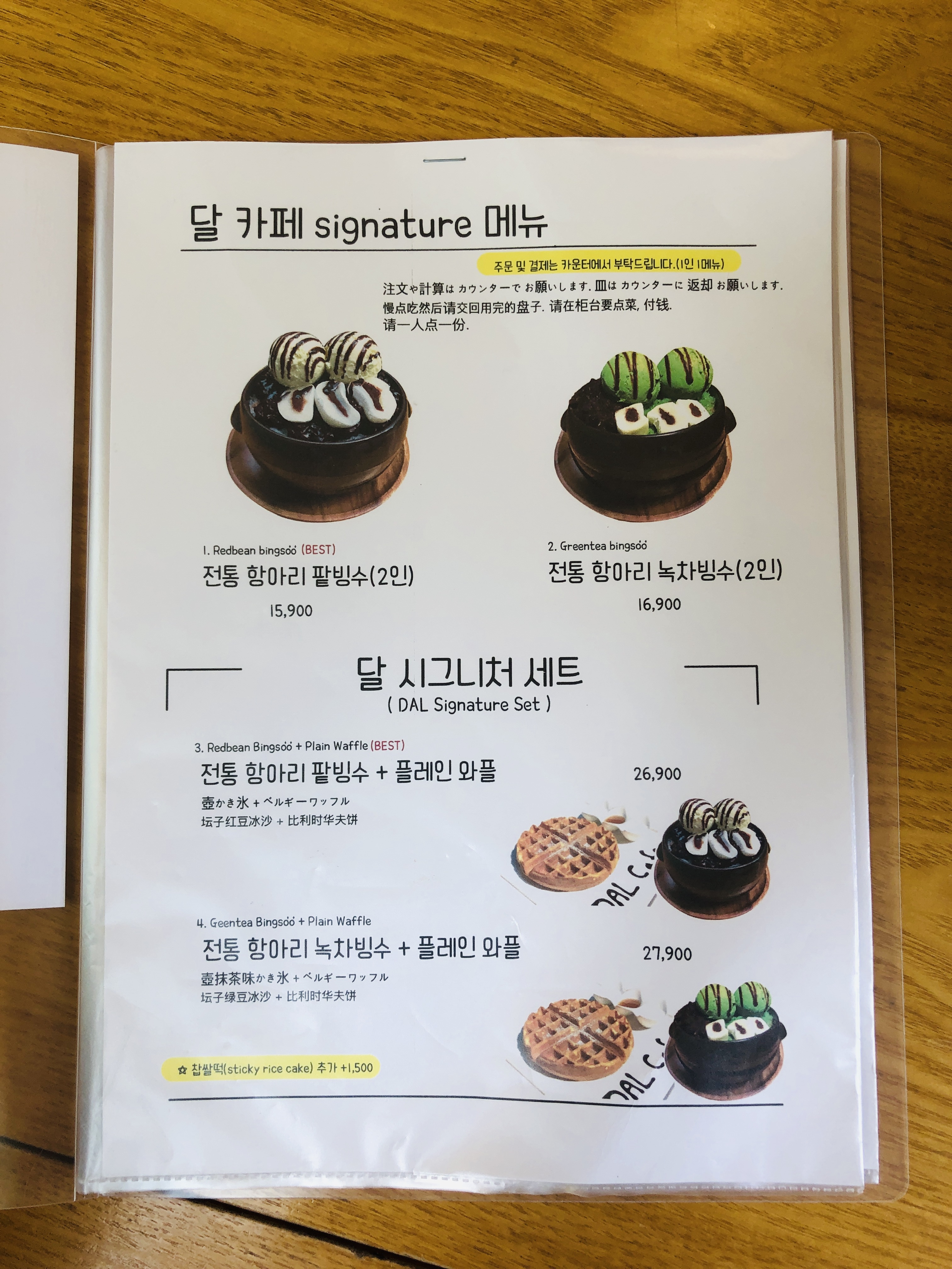 지금 글을 보면서 메뉴판을 다시 보니 1인 1메뉴 하라고 되어있는데, 우리는 모르고 빙수 하나만 주문했는데 별말씀 없으셨다.