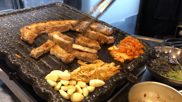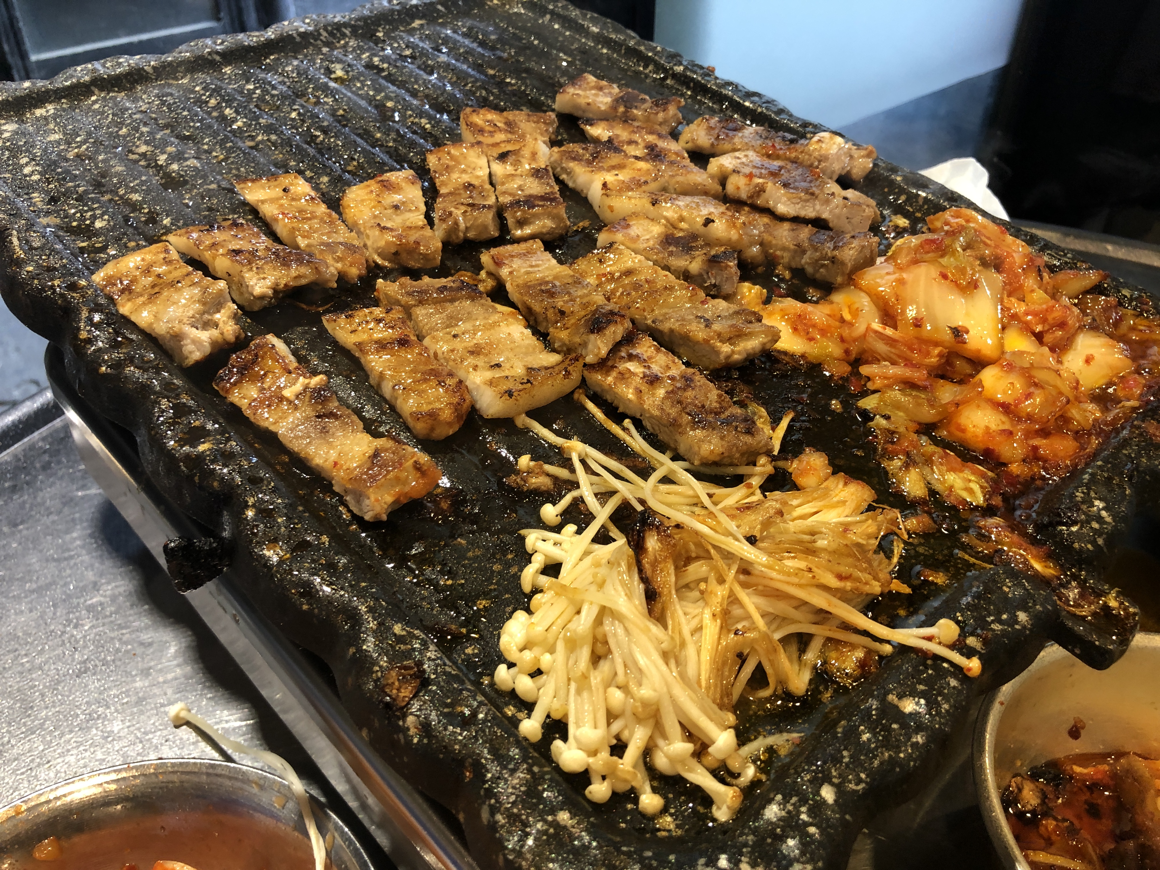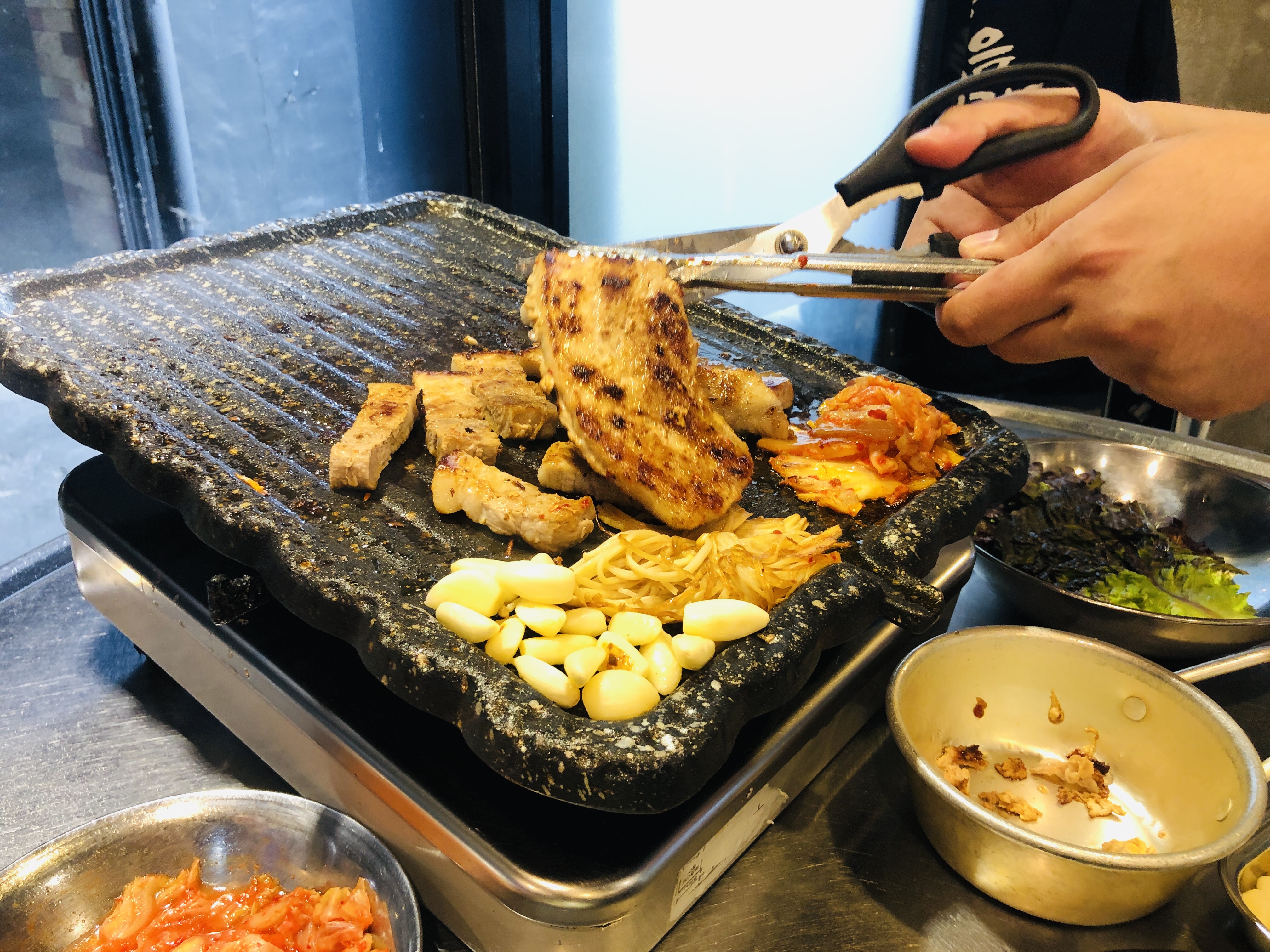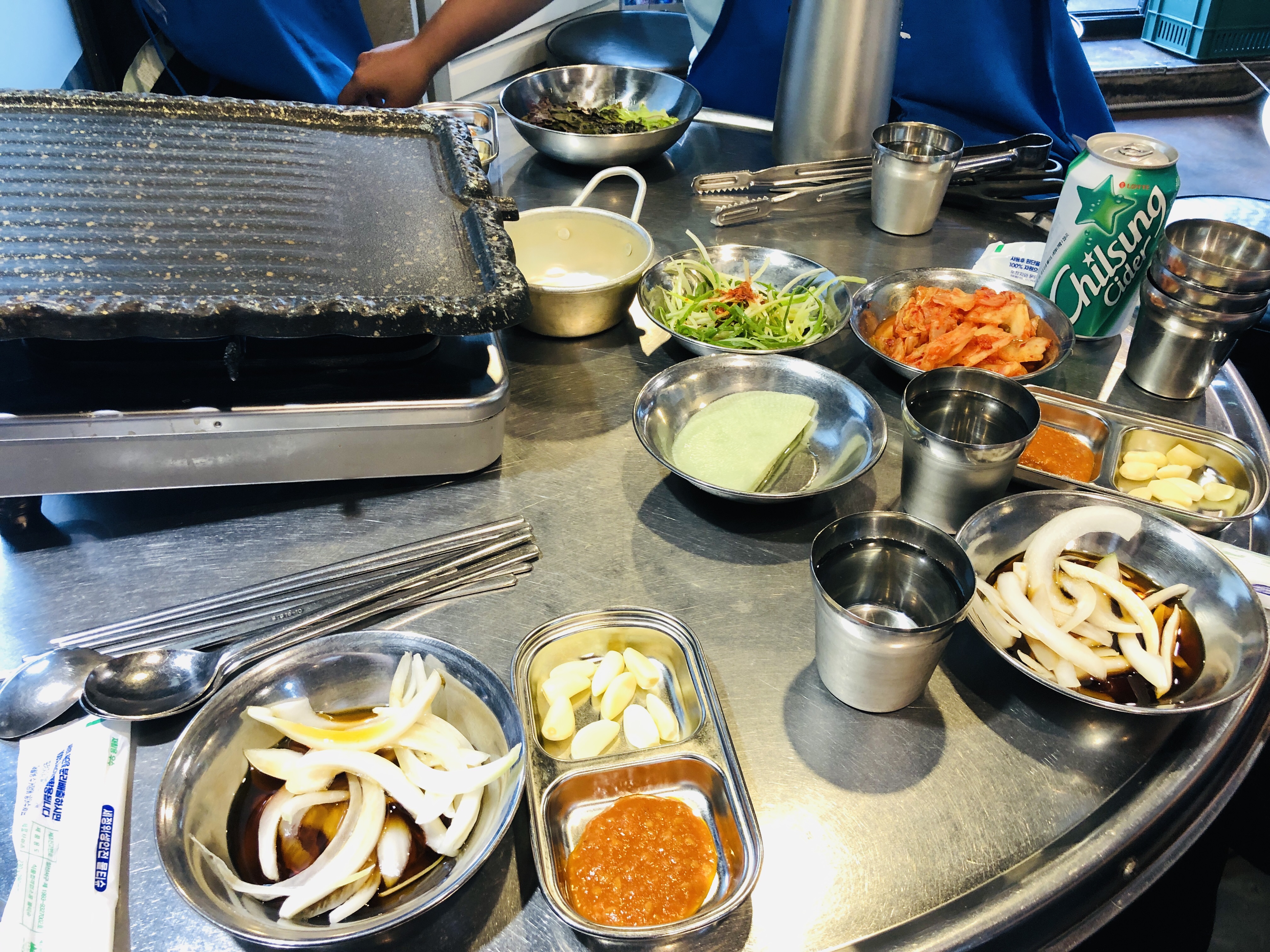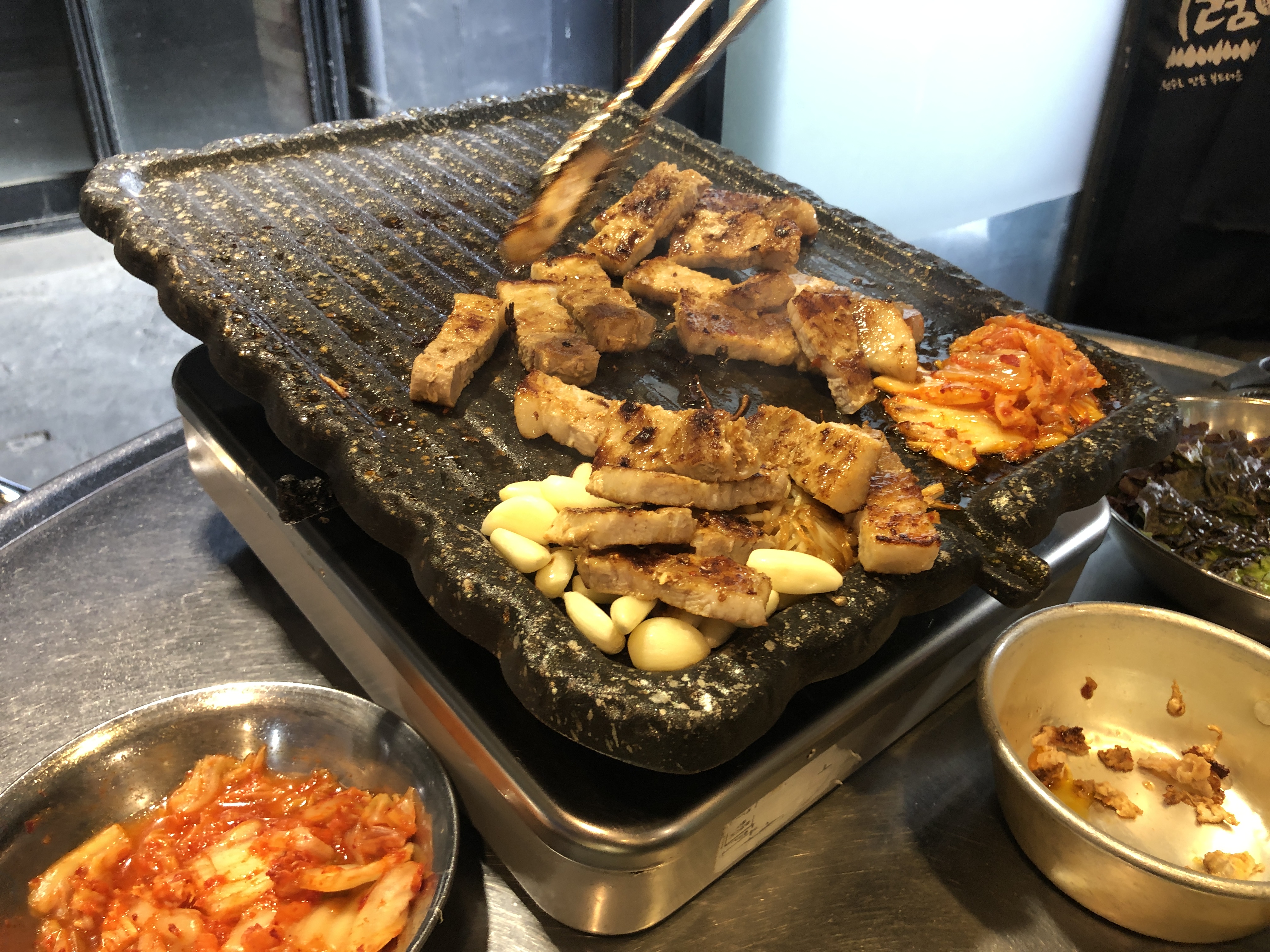 중간중간 쌈무로 눌어붙은 거 닦아내고 심하면 종업원분께 닦아달라고 하면서 먹었다.