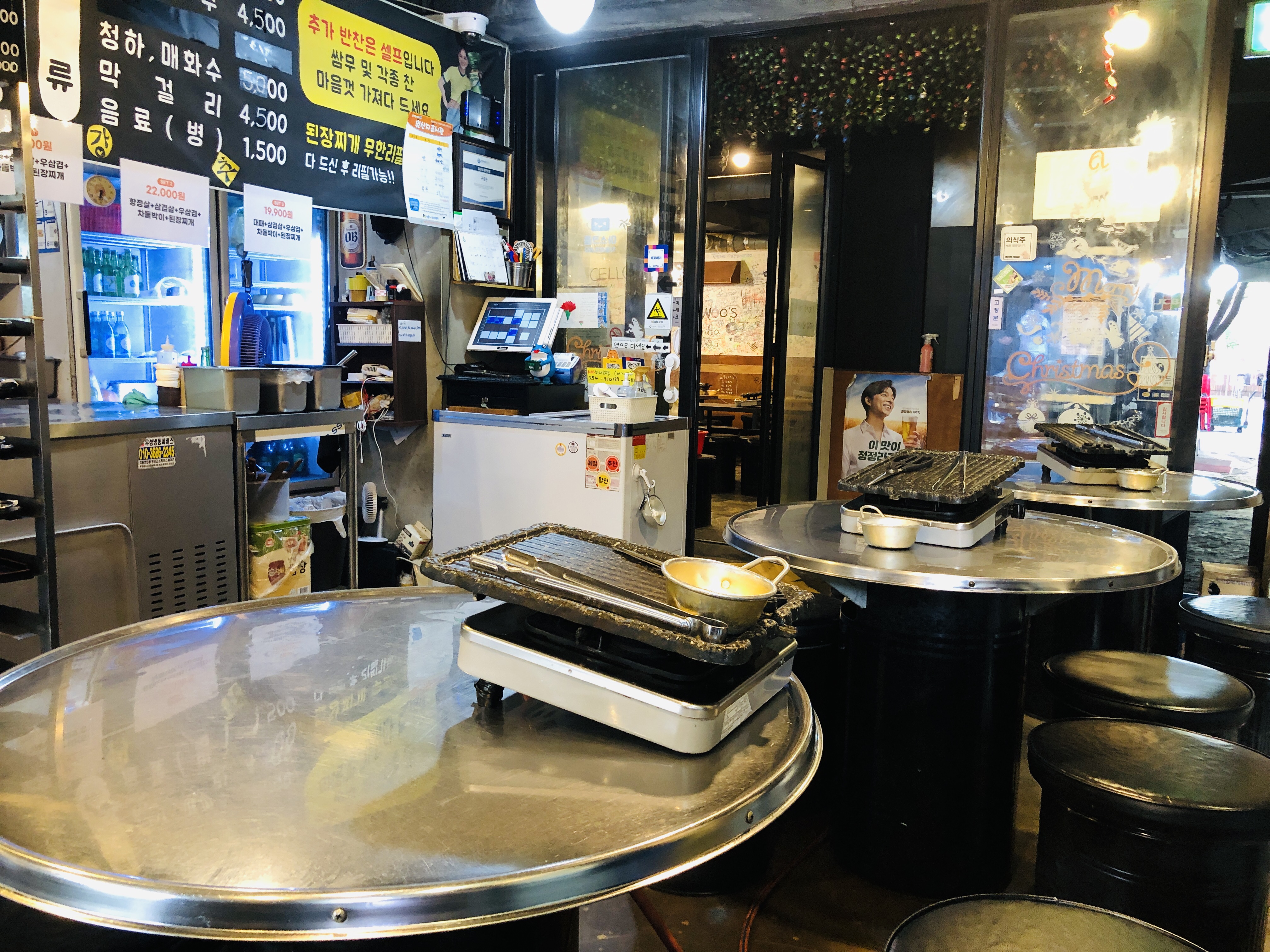 왕십리역 더구공탄은 야외에도 테이블이 있고, 실내에도 있다.