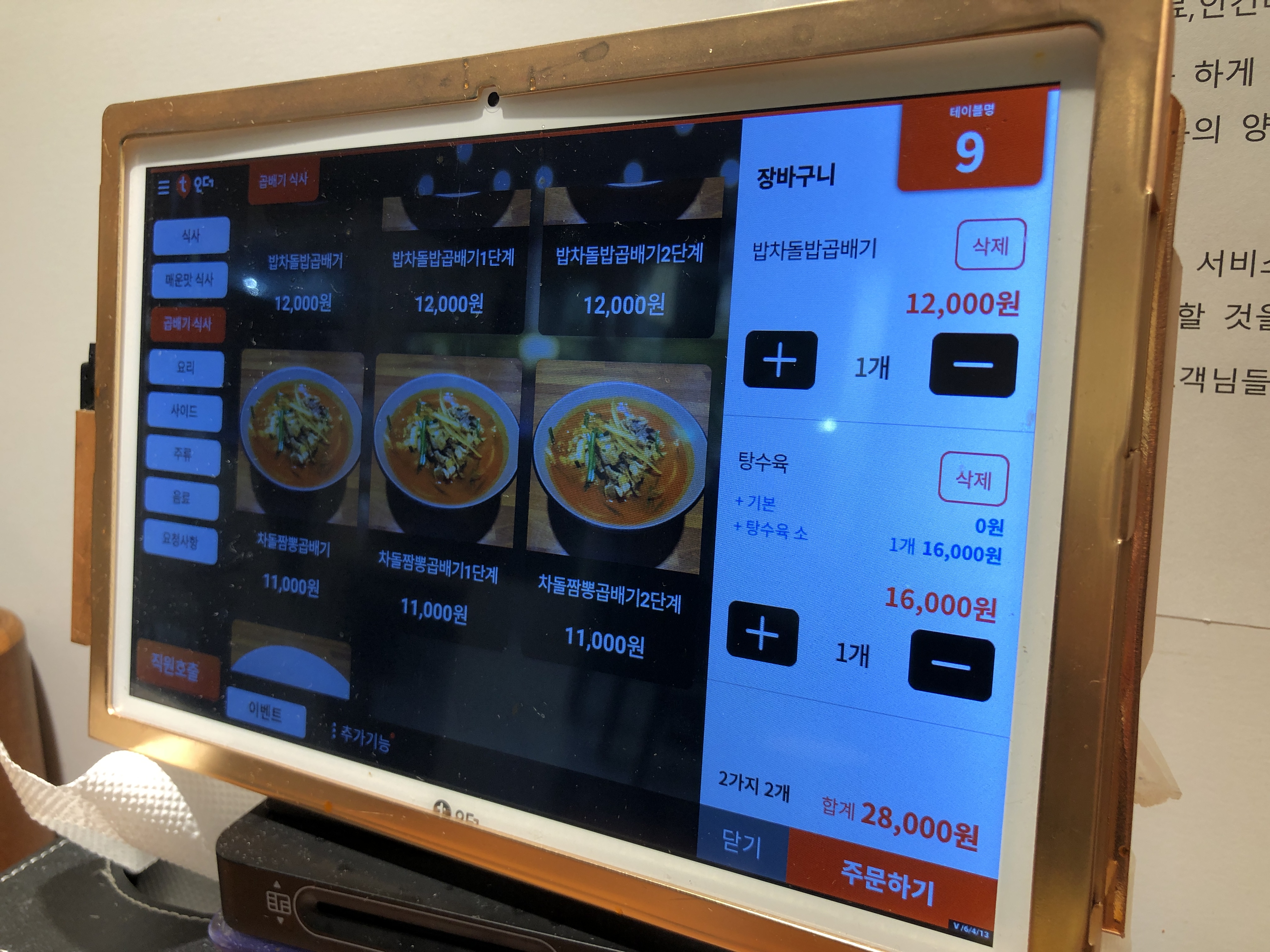 주문 기계를 사용할 경우, 원하는 메뉴를 선택하고 주문하기를 누르면 끝이다.