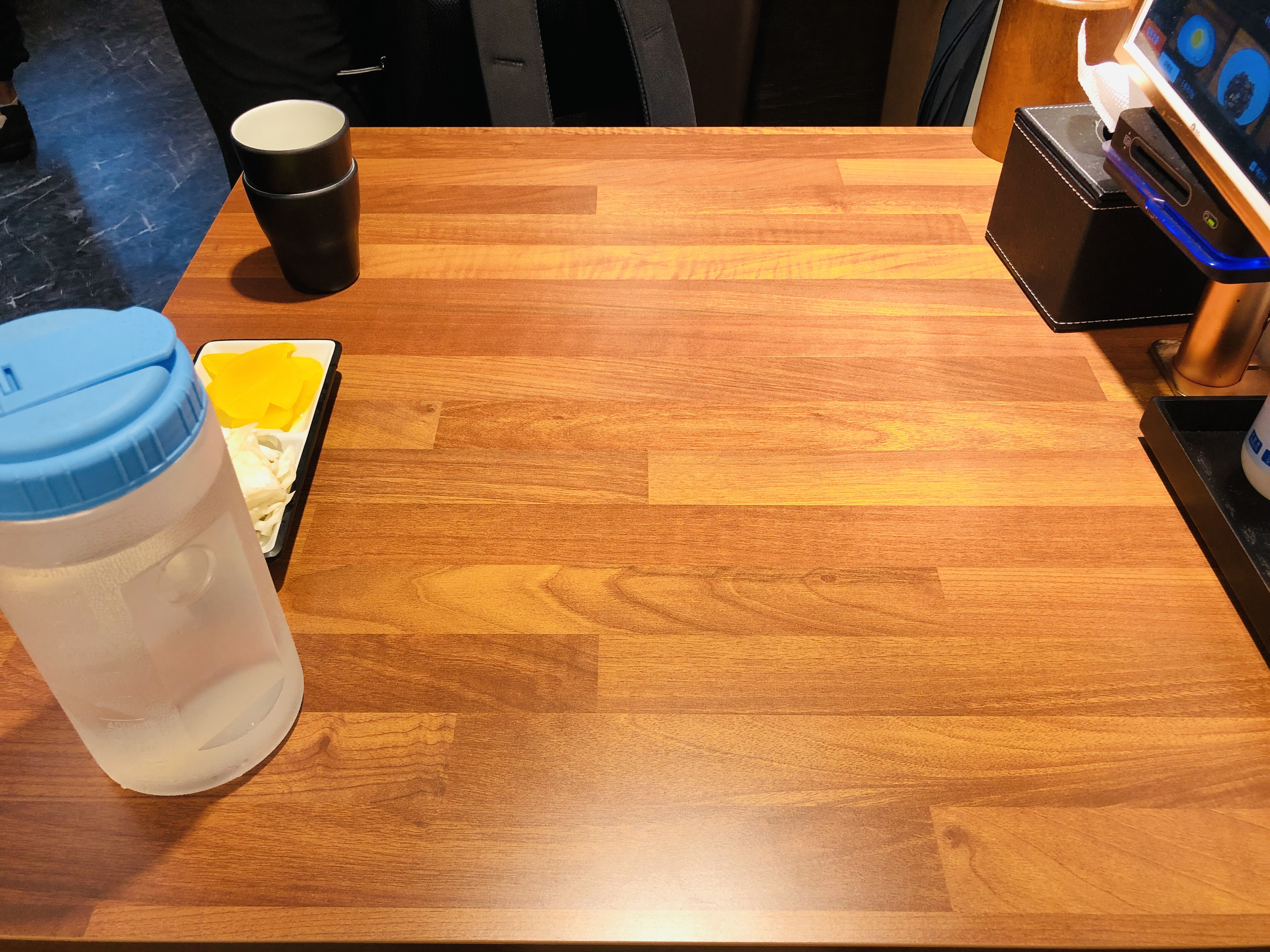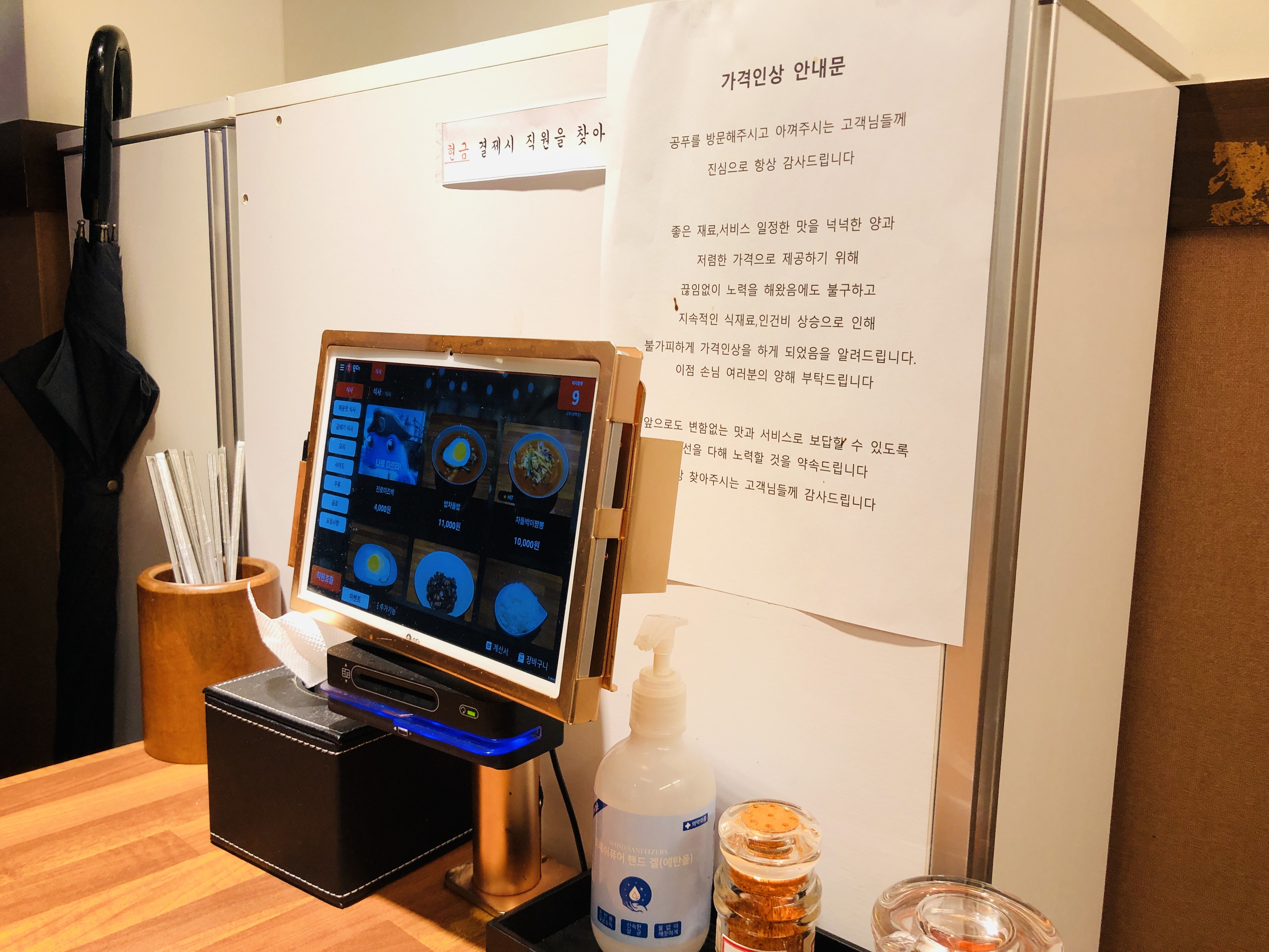식탁과 의자가 깔끔해졌고 테이블마다 주문 기계도 비치되어 있었다.
