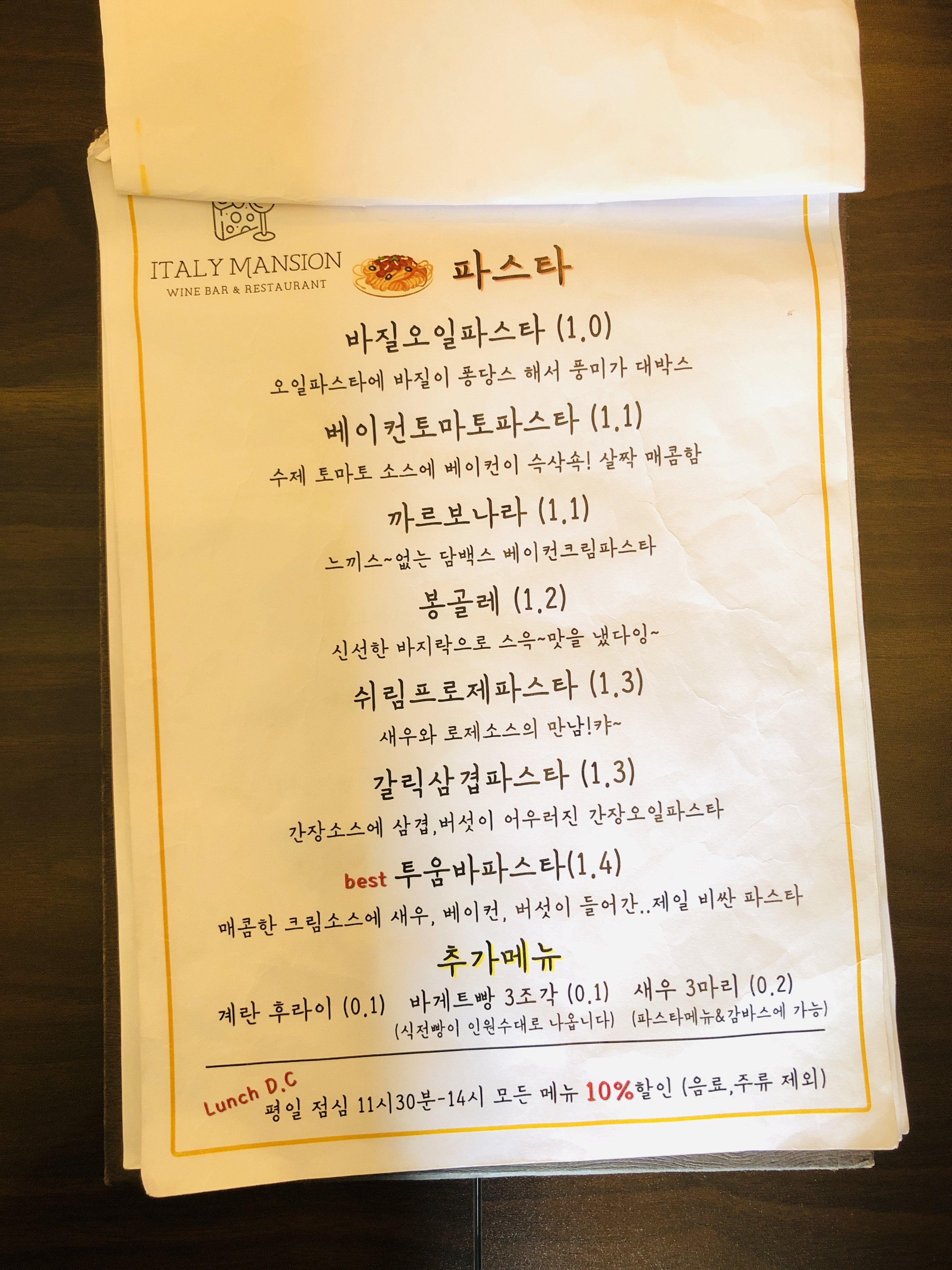특히 소스맛 진하고 꾸덕한 파스타에 꽂혔는데 ㅋㅋㅋ성신여대 근처 이태리맨션이라는 식당이 꾸덕파스타로 유명하다고 해서 친구들과 함께 방문했다!