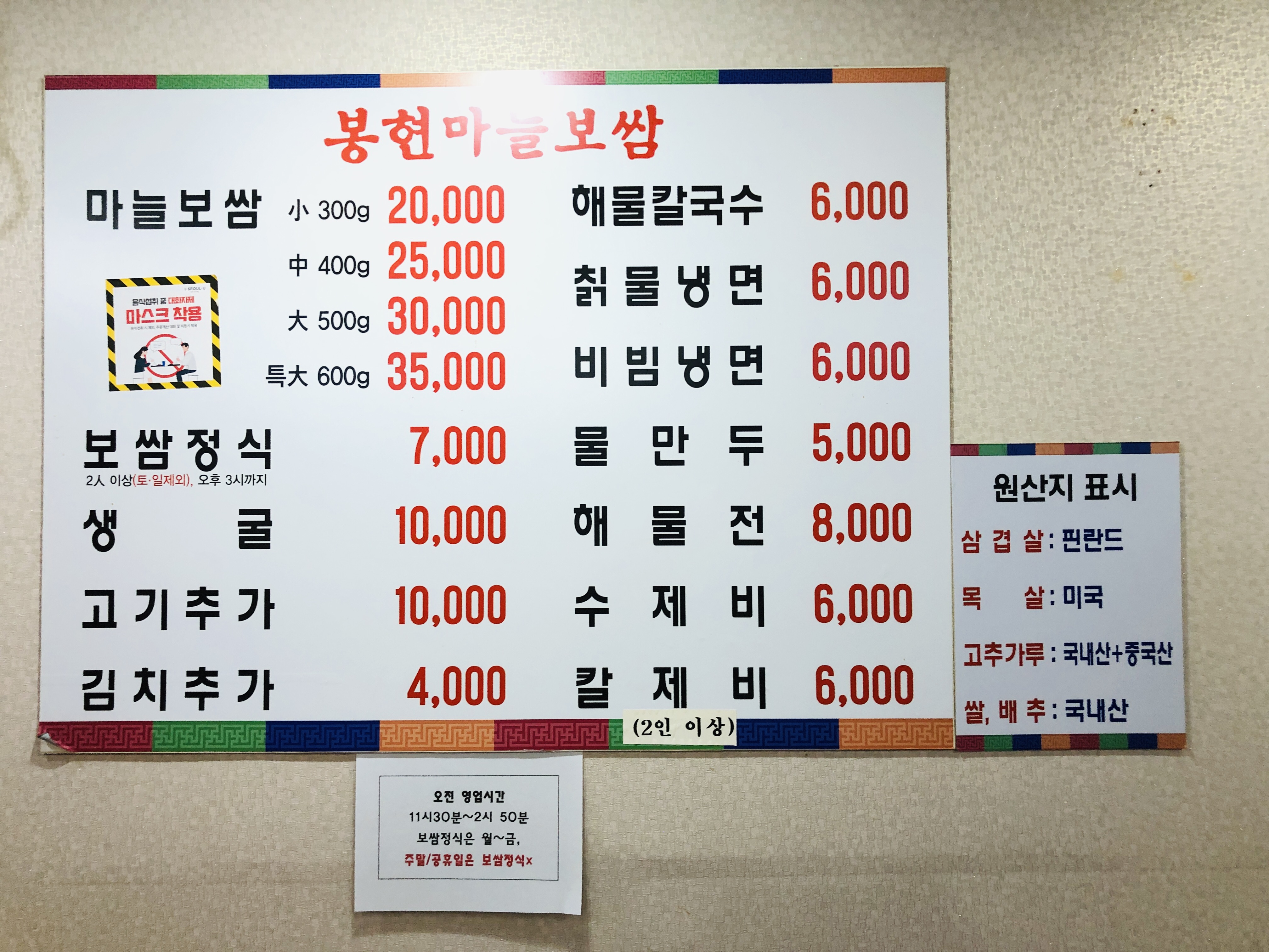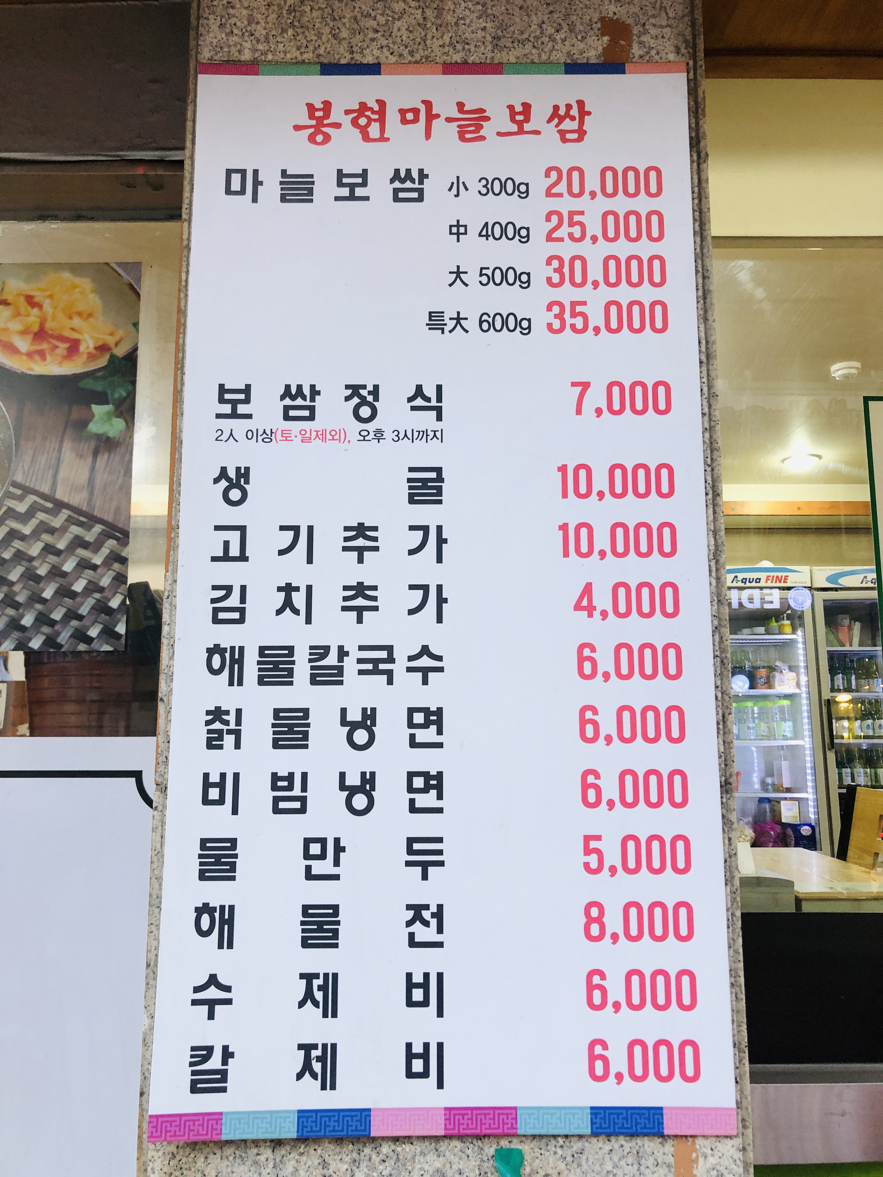 이름이 엄청 긴데 봉현마늘보쌈집이라고 줄여서 부르면 되지 않을까 싶다 ㅋㅋㅋㅋㅋ
