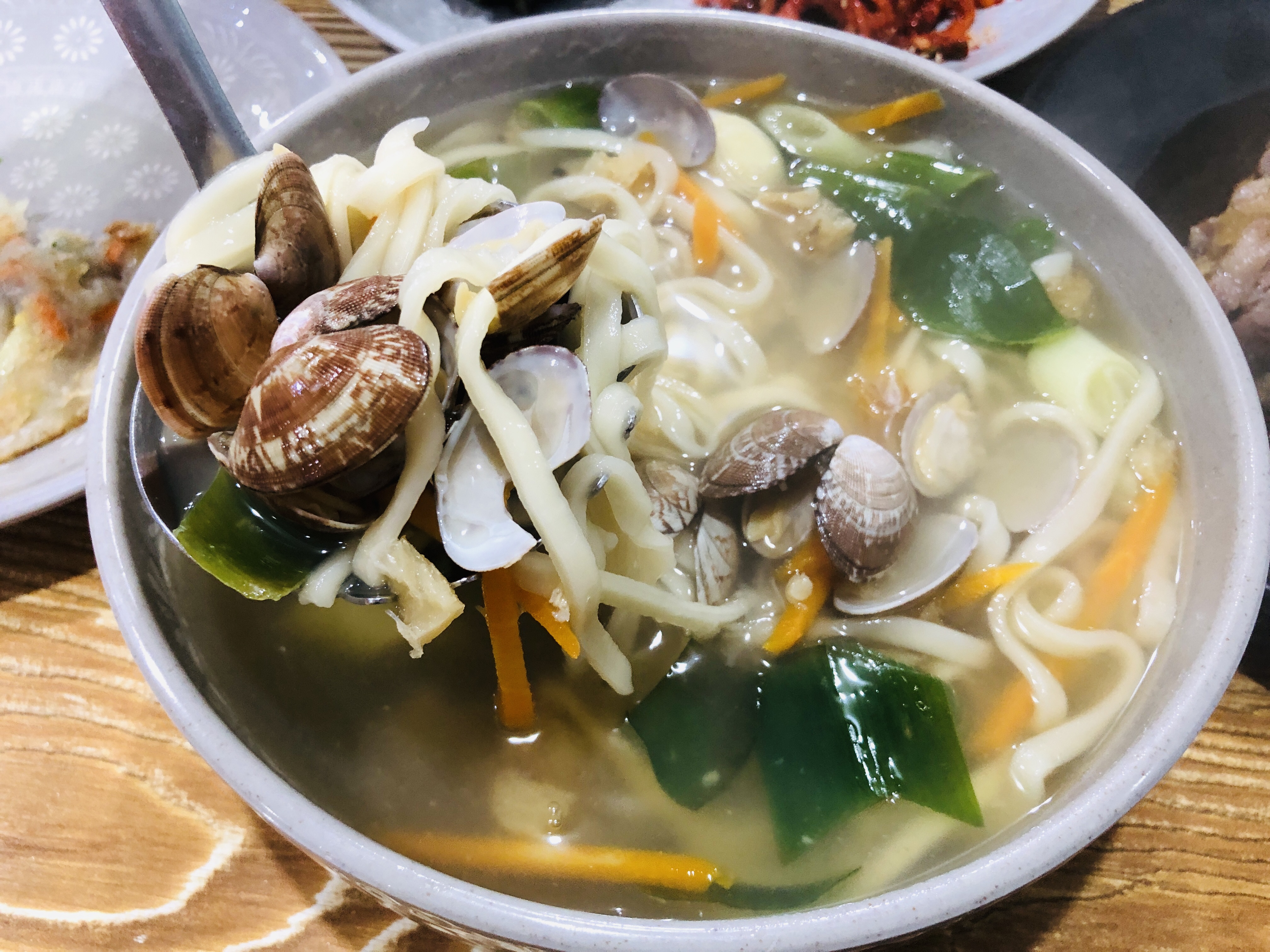 - 해물칼국수도 맛있고, 기본 반찬으로 나오는 전과 된장국도 맛있다. 걍 다 맛있음!