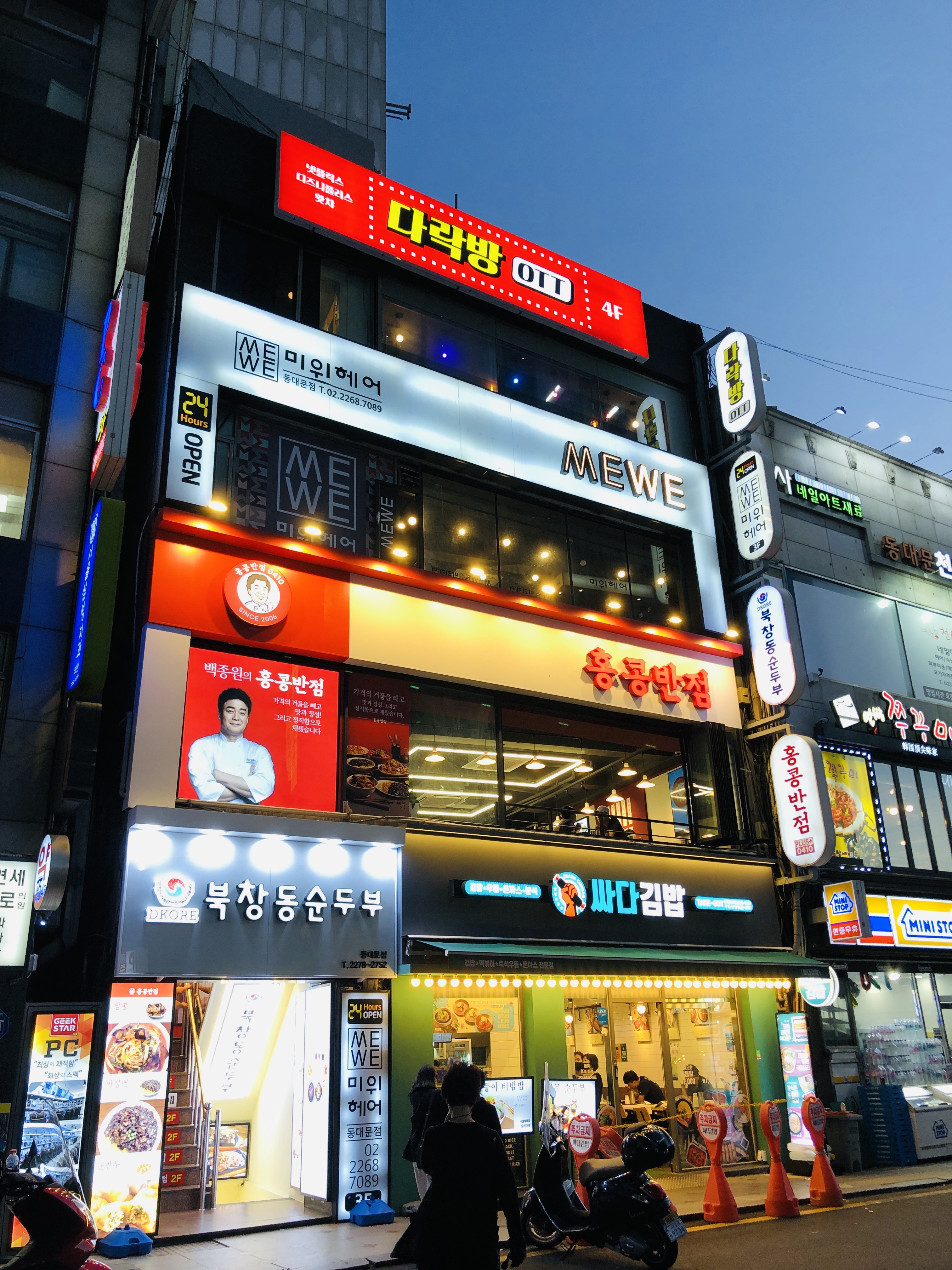 지하에는 북창동순두부집이 있고 1층에는 싸다김밥이 있는 건물 2층에 홍콩반점이 있다.