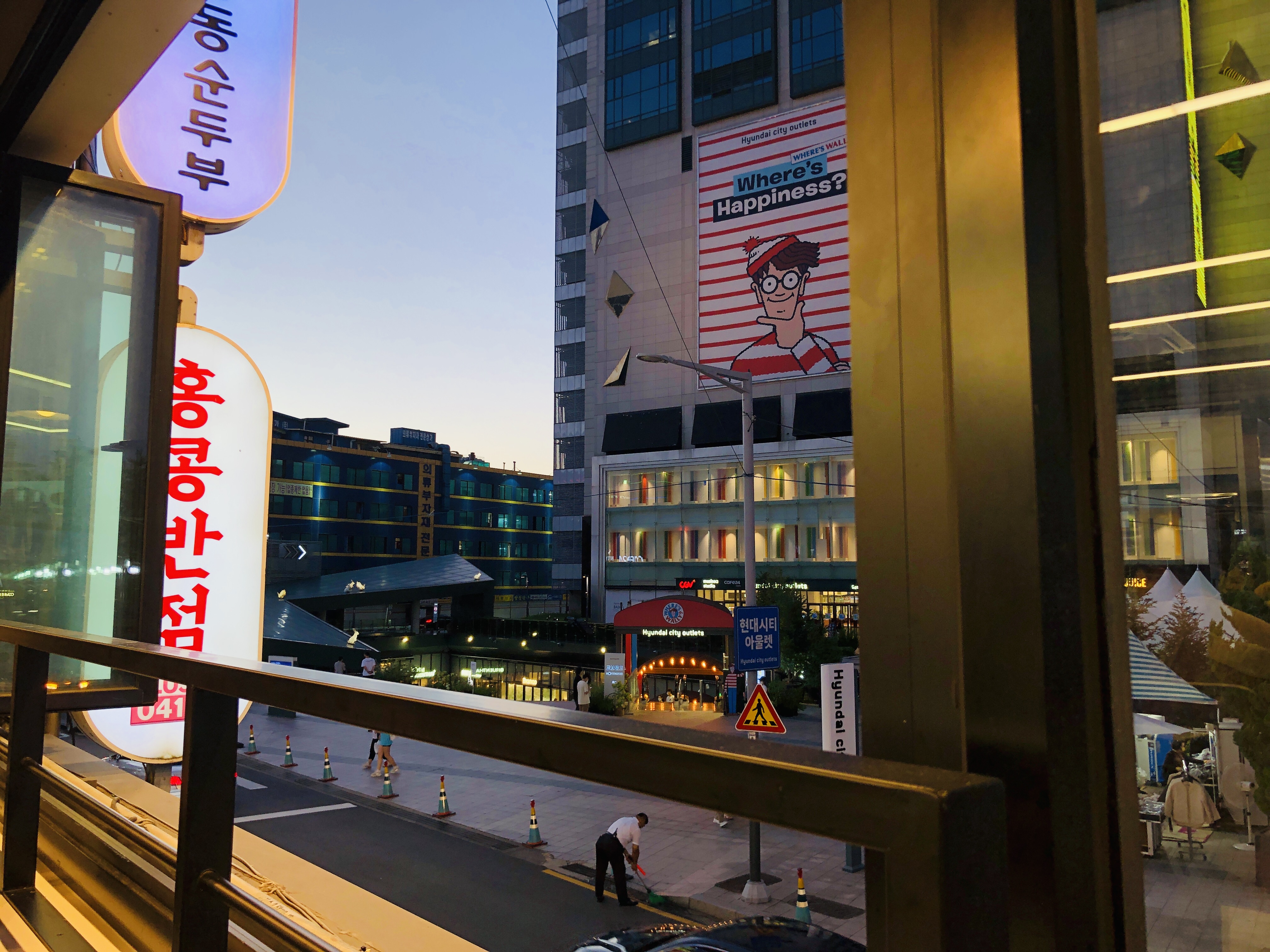 창가자리에 앉으면 건너편에 바로 현대시티아울렛이 보인다.