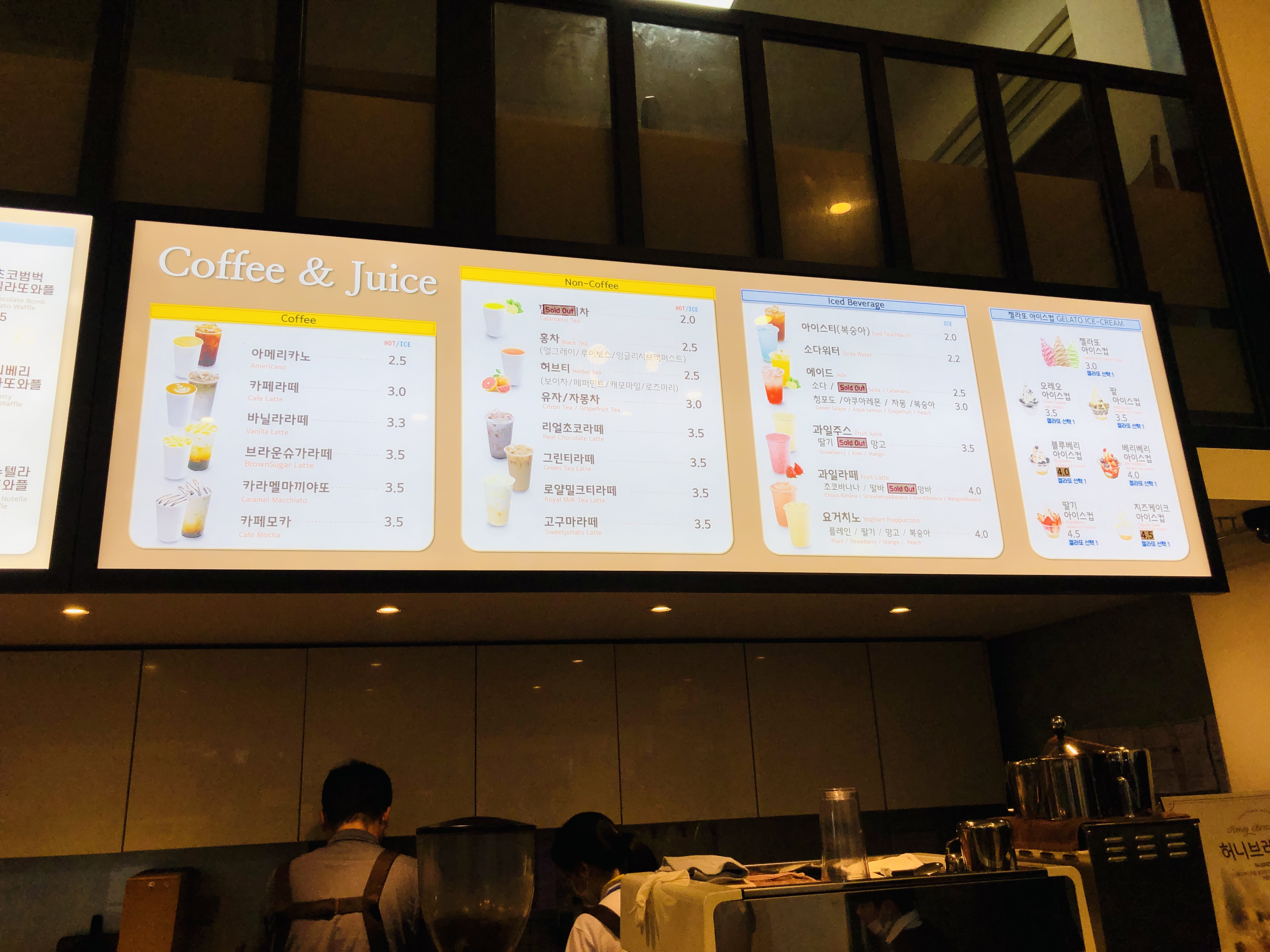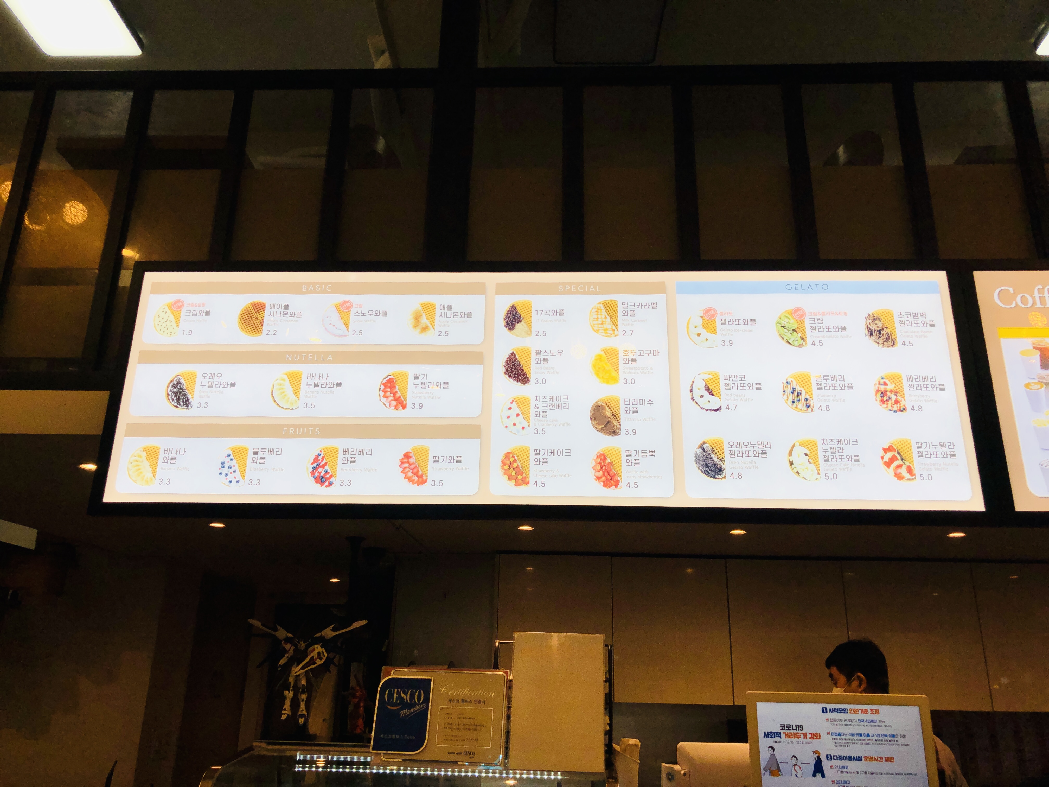 와플 종류도 다양하고 커피 및 음료의 종류도 다양하다.