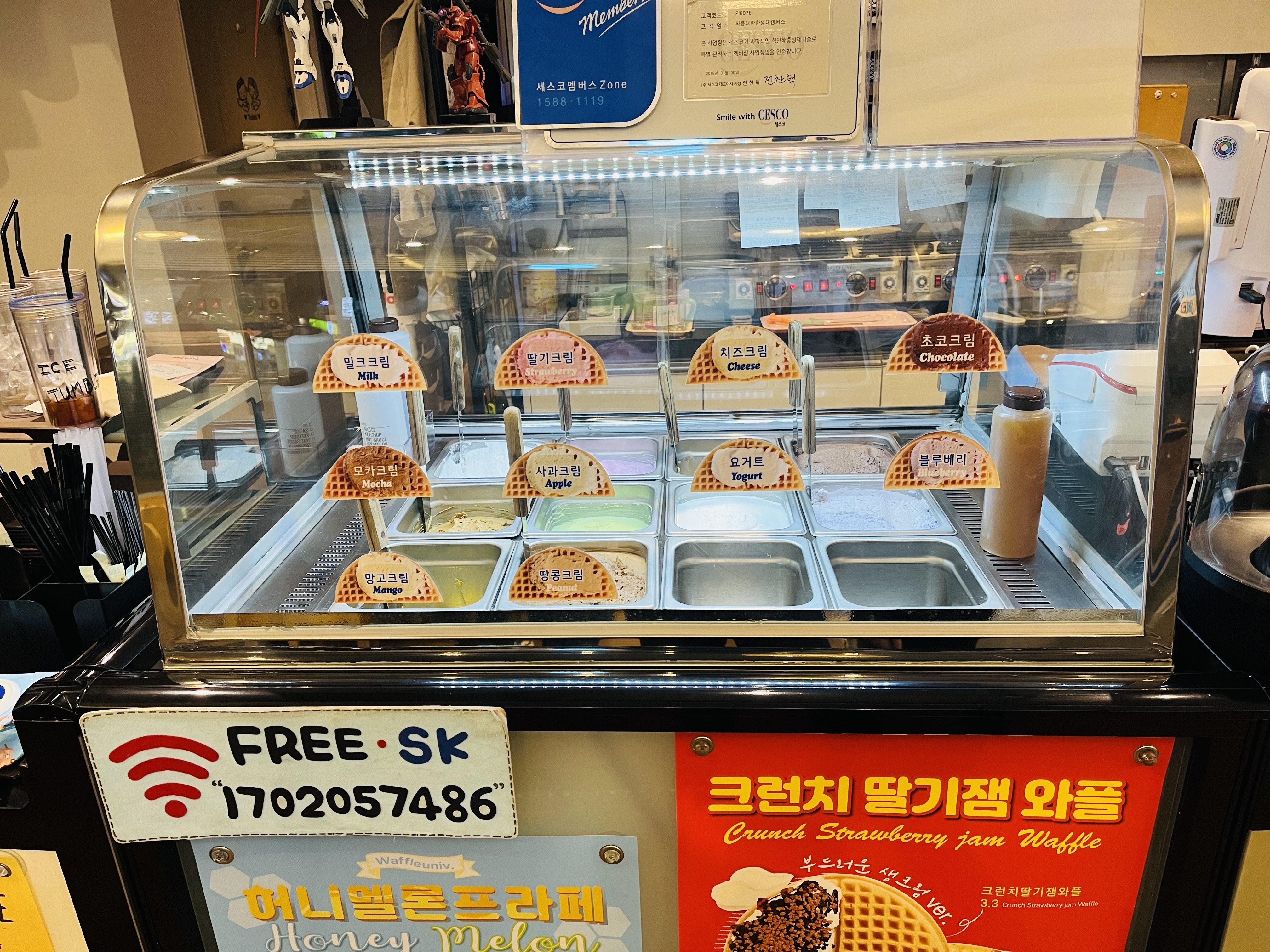 크림 종류가 쫙 나열되어있고, 와이파이 비번도 적혀있다!