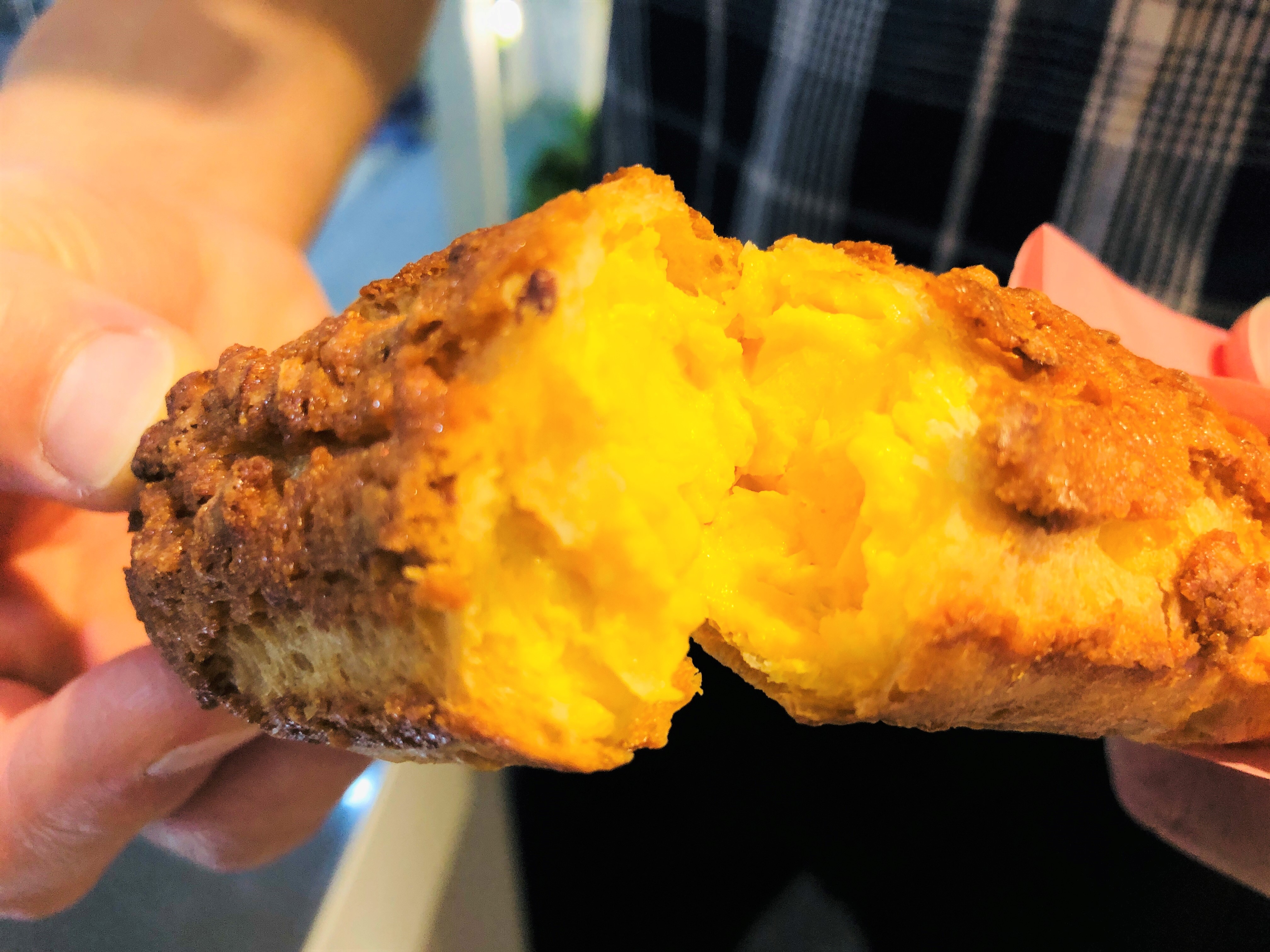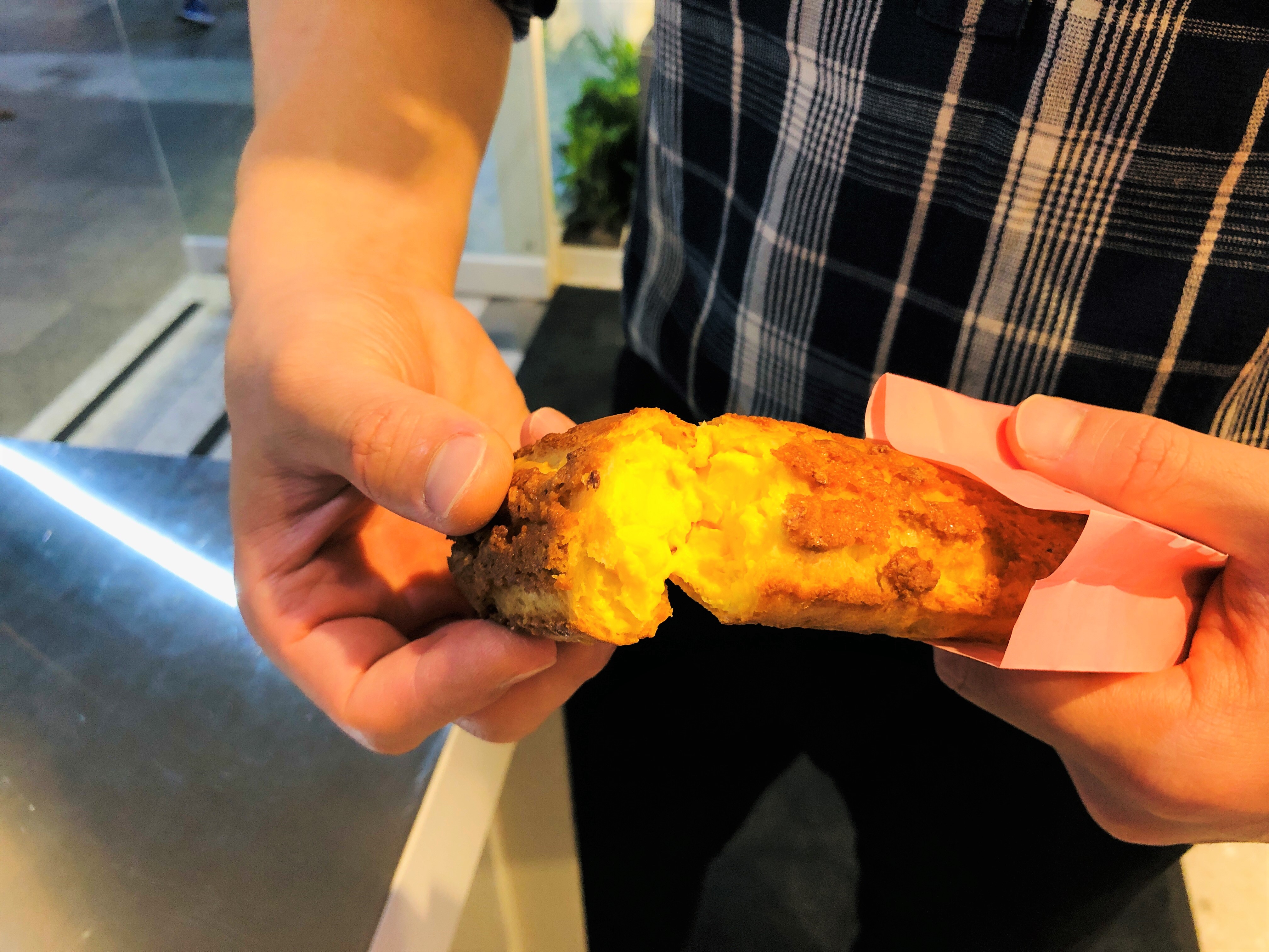 유튜버 가오니님이 말한 그대로 겉은 아몬드 가루가 뿌려진 맛인데 달달 고소 바삭, 속은 시원하고 달달한 커스터드 크림이 듬뿍 들어있다.