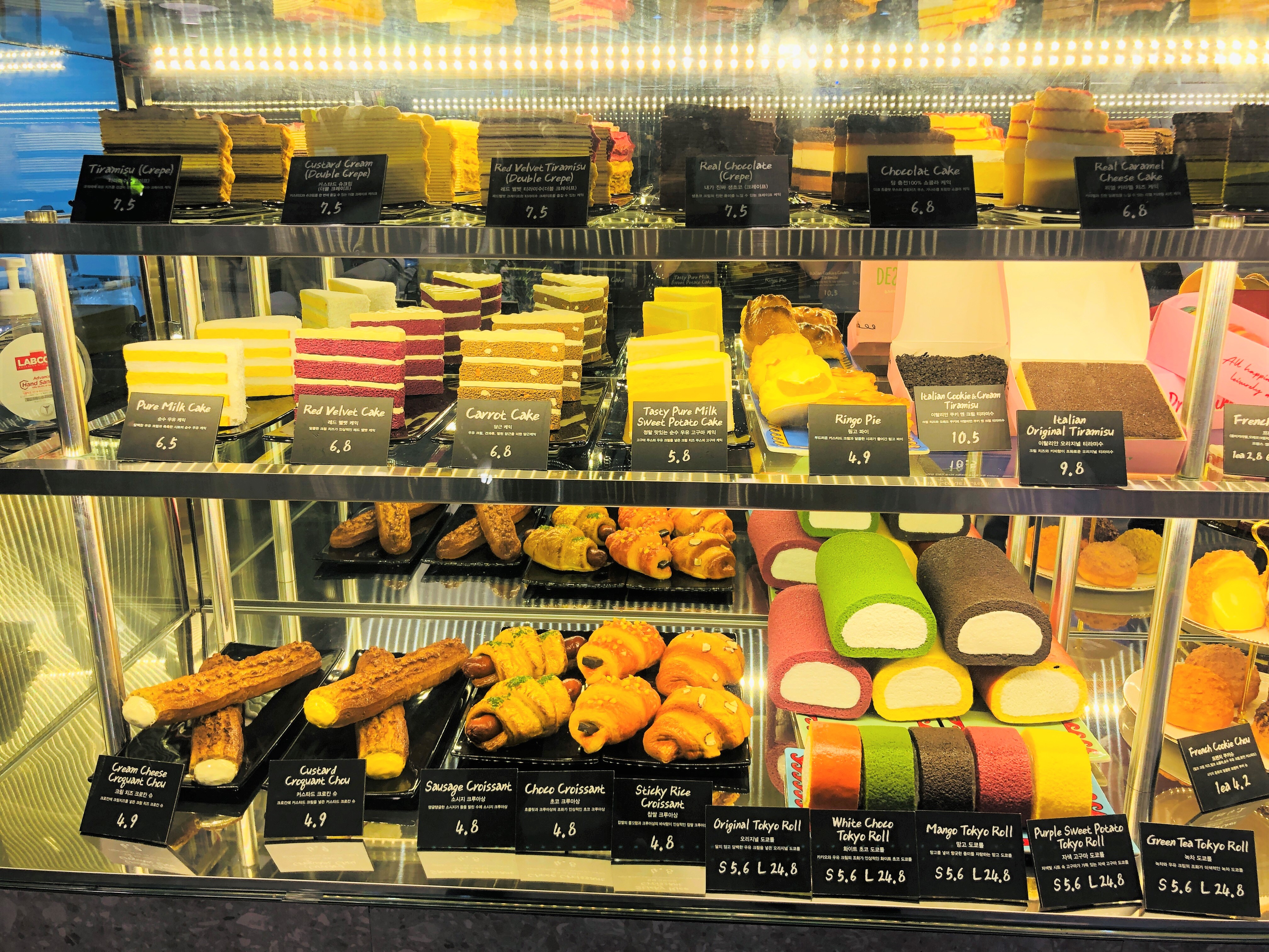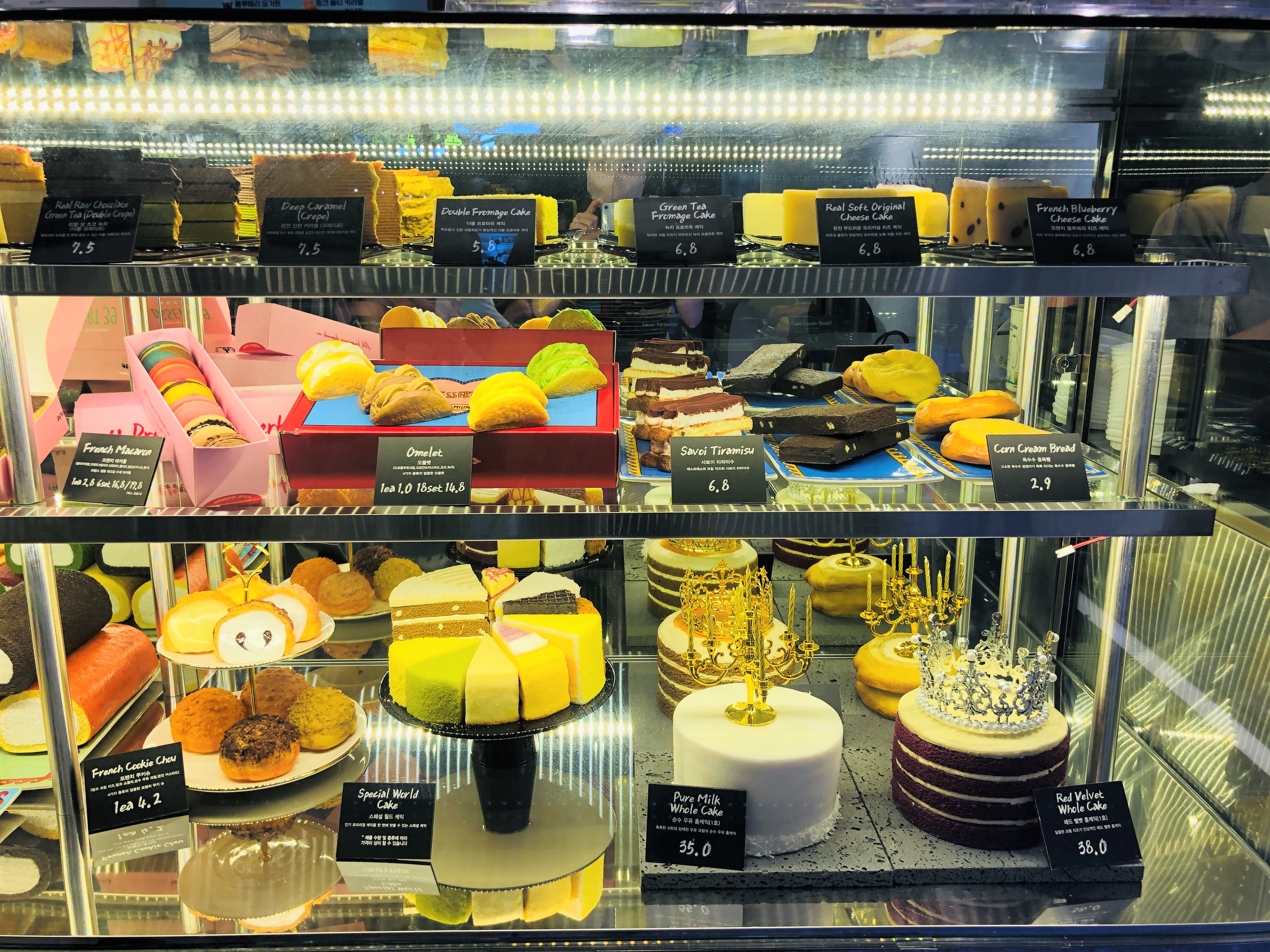케이크, 마카롱, 오믈렛, 크로아상, 롤, 쿠키슈, 크로칸슈 등등