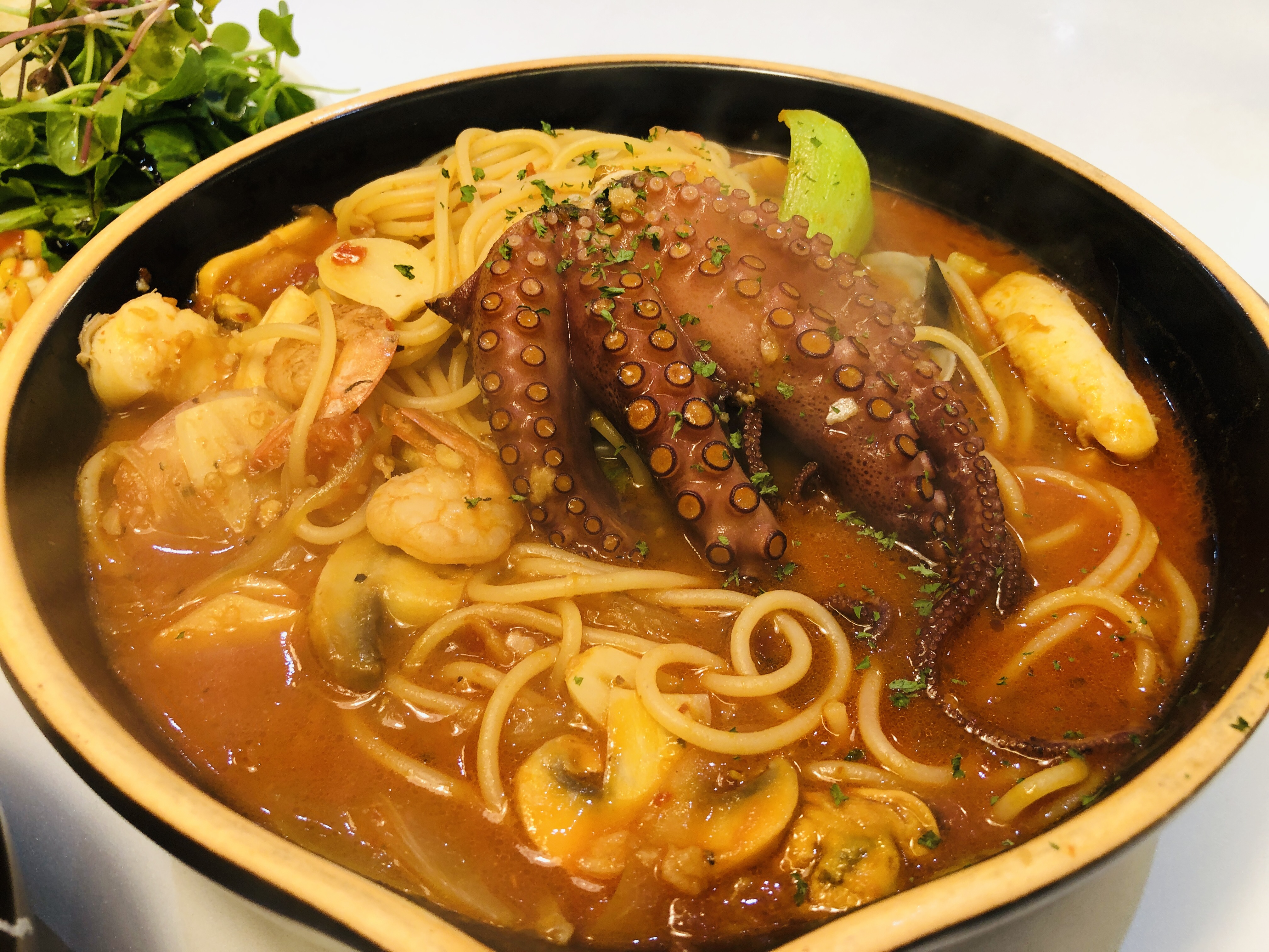 돌문어가 큼직하게 들어있고 여러 가지 다양한 해산물이 듬뿍 들어있어서 좋았다.