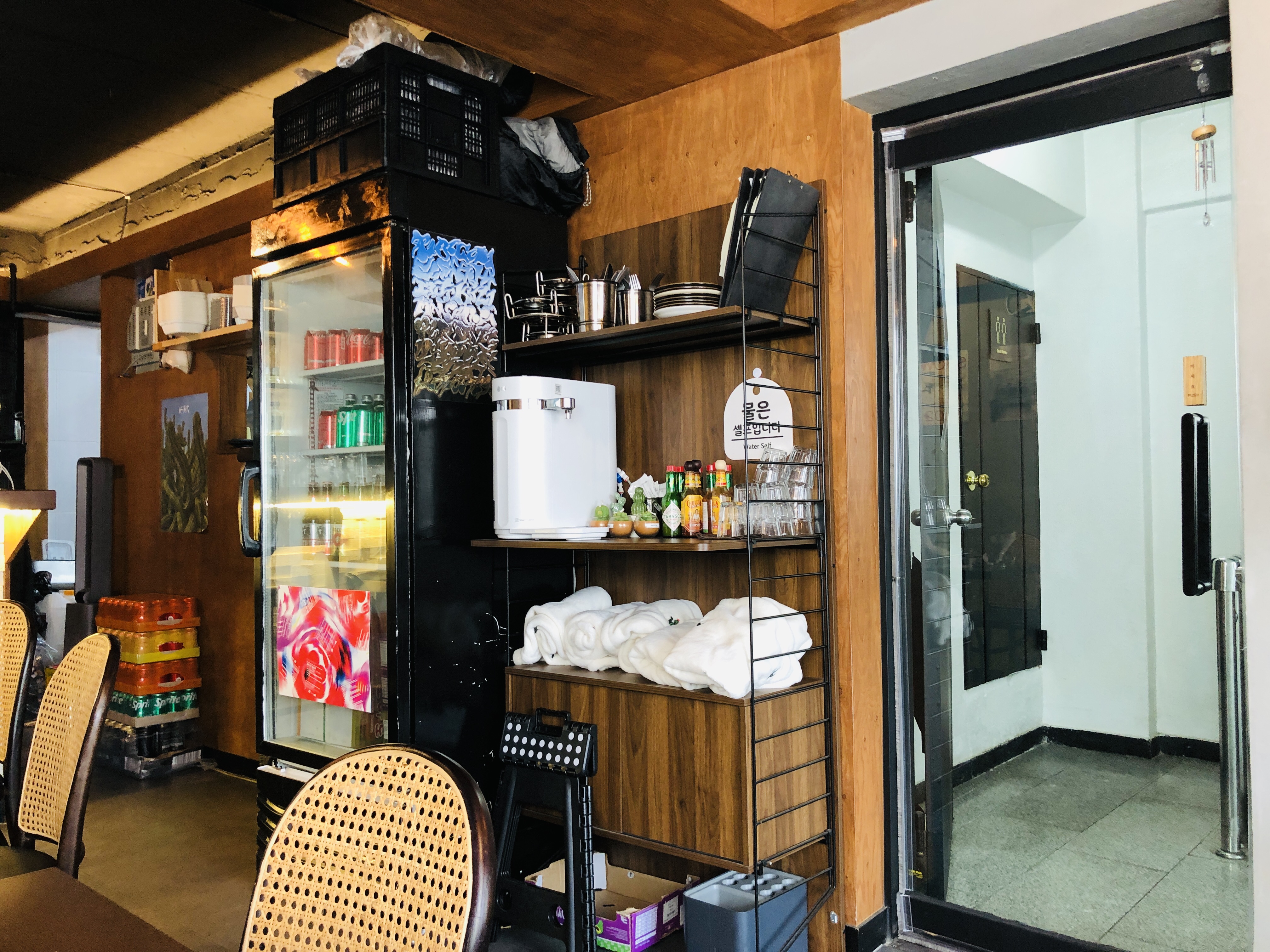 입구 쪽에 물을 셀프로 가져다 먹을 수 있는 곳이 있었다.