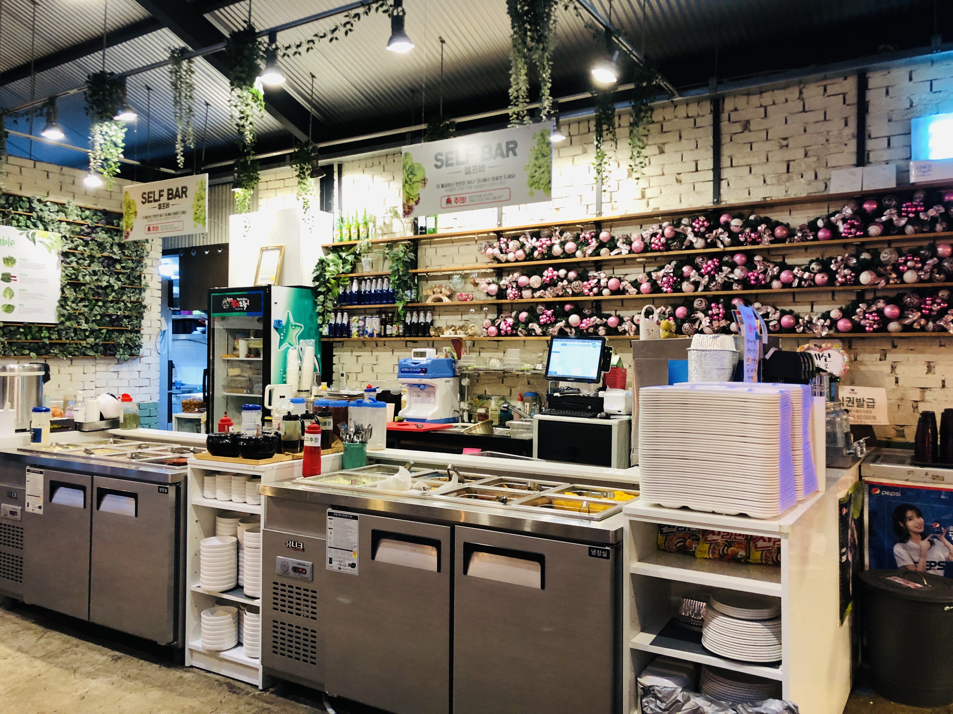 밑반찬이랑 셀프바에 있는 음식들이 대체로 깔끔하고 맛있다.