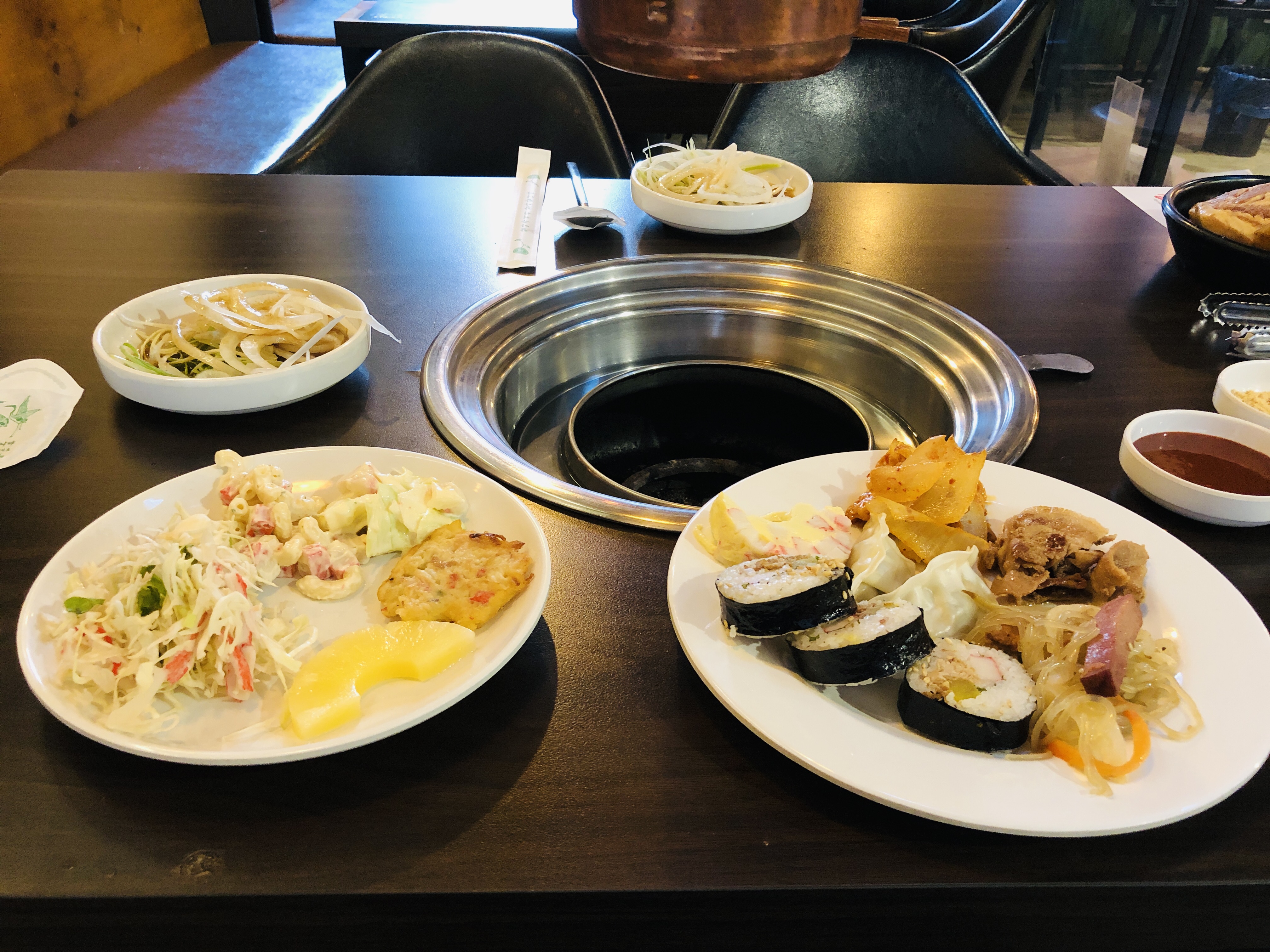 숯불과 고기가 나오기 전에 뷔페 온 것 마냥 거하게 떠서 먹었다 ㅋㅋㅋㅋ너무 배고팠어 ㅠㅠ