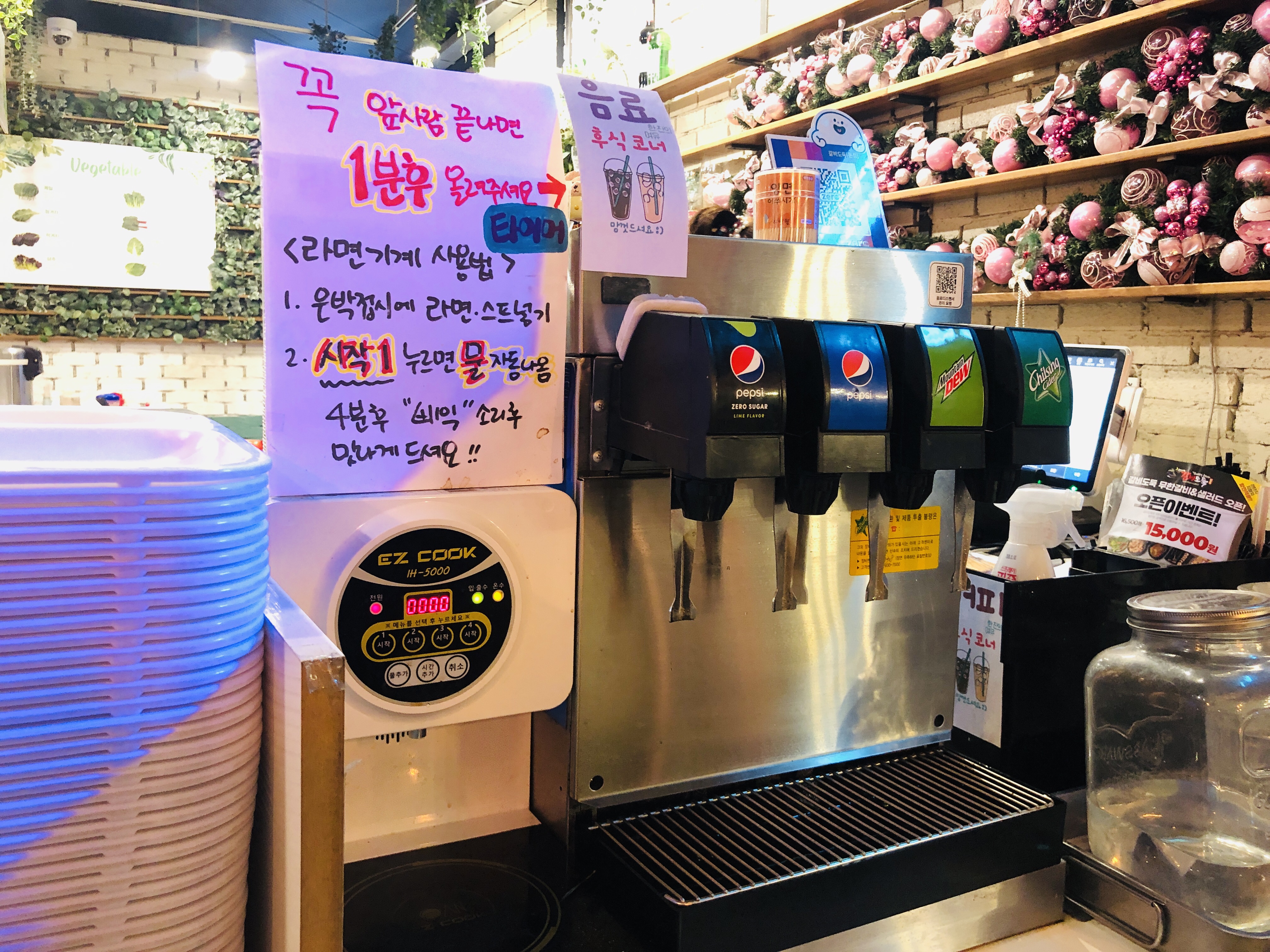 음료수는 무한리필로 주는 곳이 꽤 있지만 보통 라면은 돈을 받는데 여긴 라면도 공짜!