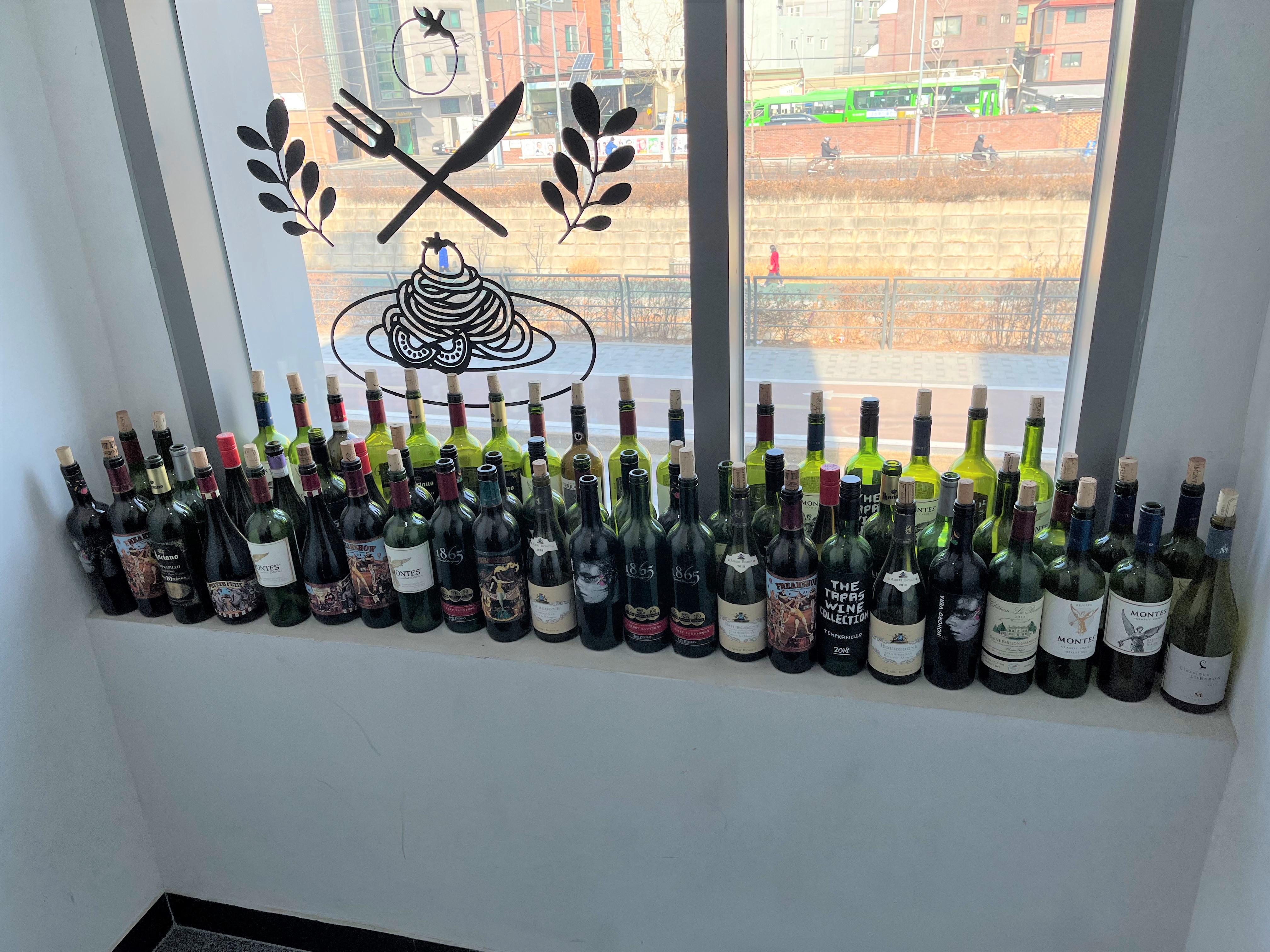 올라가는 길 창가에 와인병을 진열해 놓으셨다 ㅋㅋㅋ