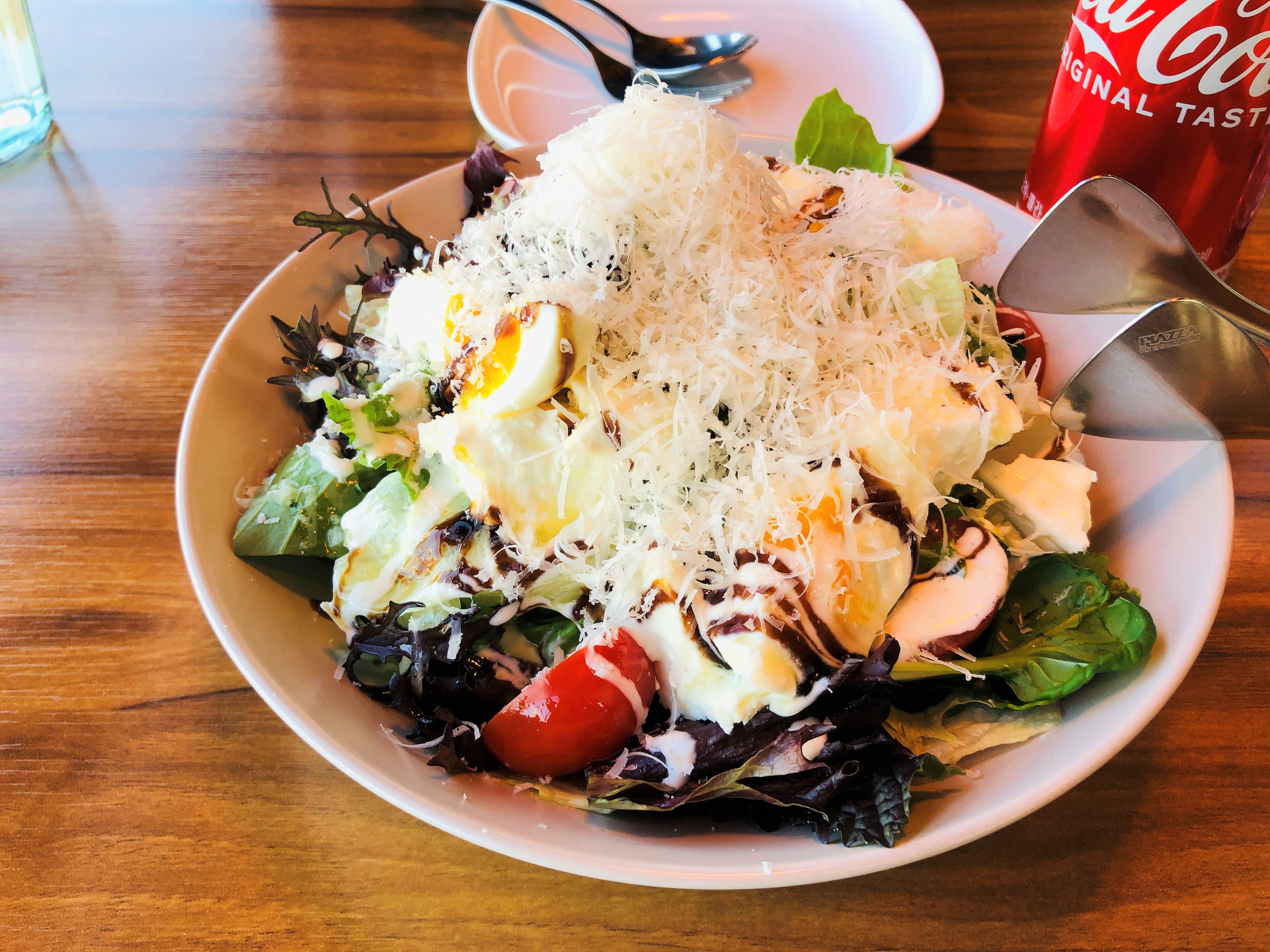 채소 + 방토 + 계란 + 치즈 + 발사믹드레싱 등으로 알차게 구성되어 있음!
